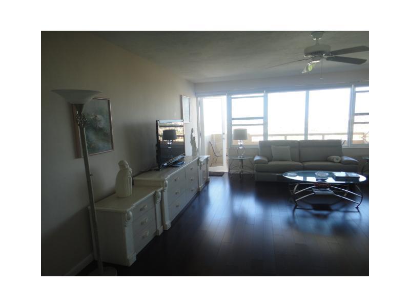 BEST VIEW IN CORAL RIDGE TOWERS. Penthouse with Panoramic views of the Intracoastal and ocean. Updated with cherry wood floors, updated kitchen with newer appliances and granite counters, impact windows, one year old central air, custom window treatments in living and bedroom. Centrally located building with its own beach club for your private party. Walking distance to ocean, restaurants and shops. Furniture is negotiable.