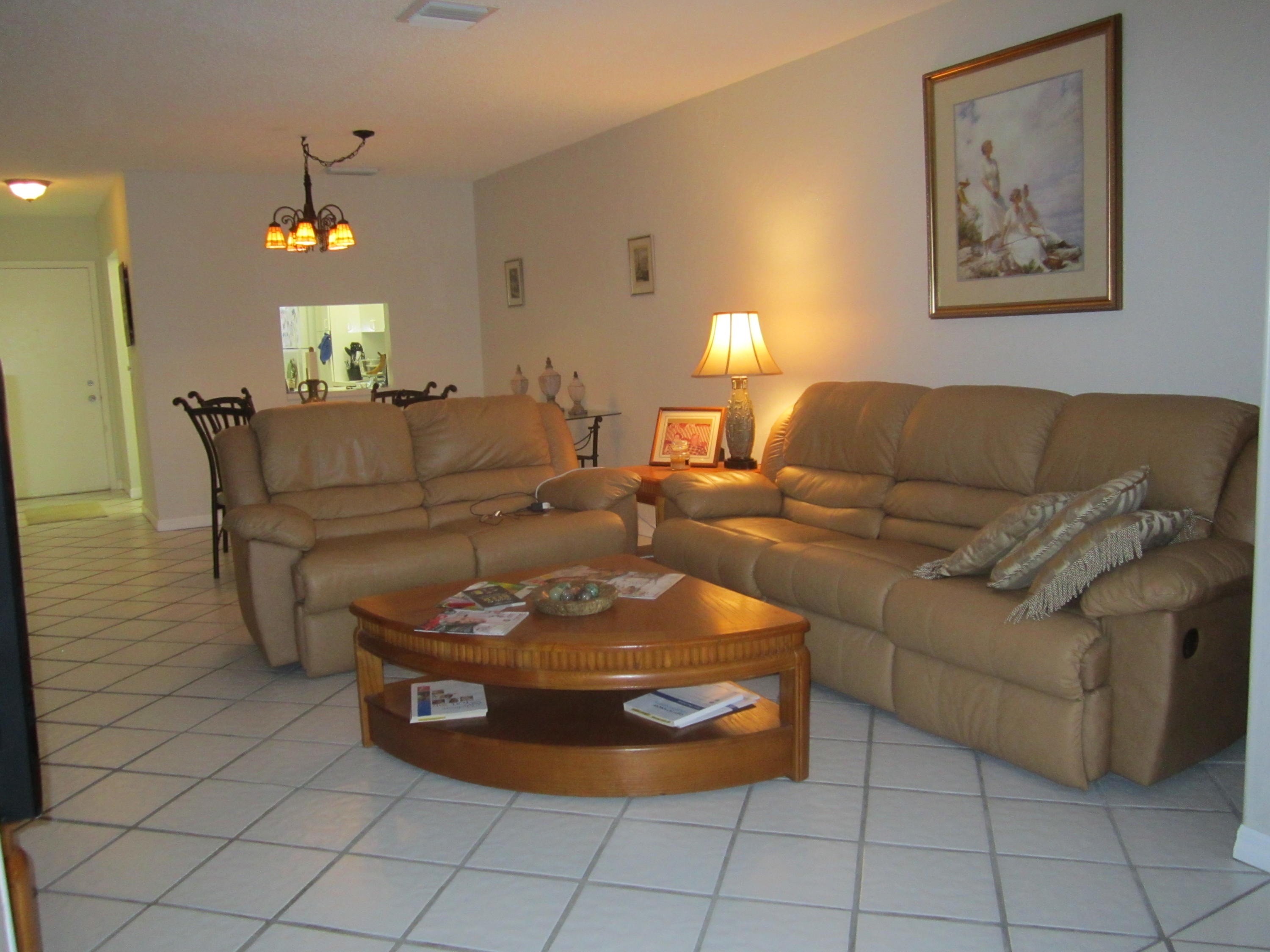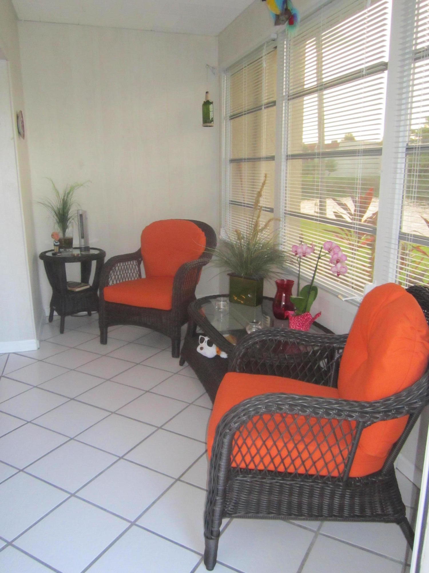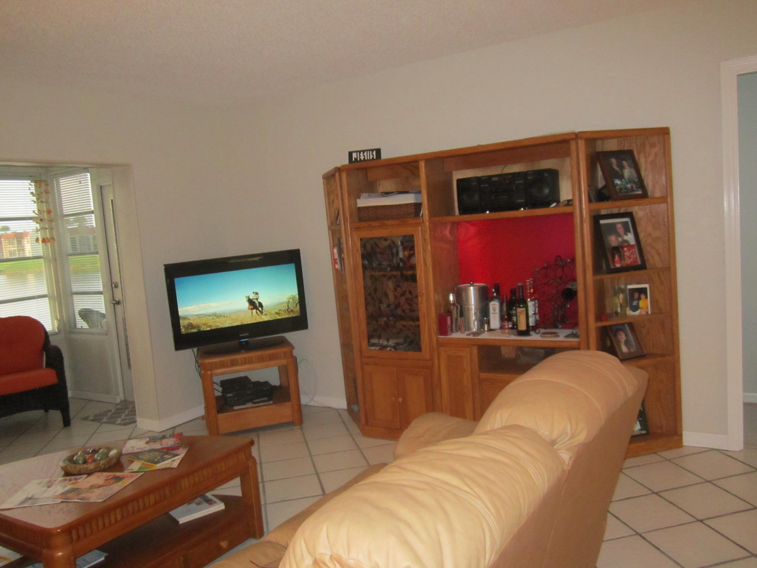Perfect as winter home or to enjoy year-round! Immaculate Condo with a stunning lake view. Nice living Room, Dining Room, Kitchen with a pass-through space, Laundry room with stacked washer/dryer & room for full size appliances. Enclosed Florida Room, New Patio at the back of the unit. All new doors, base boards, Tile throughout Living room, Dining Room, Kitchen & both bathrooms. Both bedrooms have all new carpeting. Air Conditioning unit 2.5 ton Rheem and 4 years old. Owner is open to negotiate all of the furnishings/Housewares. Very Active community: amenities such as Fitness Center, 2 Pools, Spa/Hot Tub, Game Room, Billiards, Shuffle Board, Tennis, Courtesy Bus plus a cafe that id open Breakfast & Lunch. Close to everything!