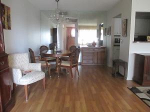 very well done condo with Pergo floors fresh paint, shows very well it is in move in condition. Enclosed Florida room the appliances have been replaced and all furniture stays. Immaculate condition accordion hurricane shutters