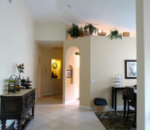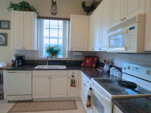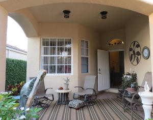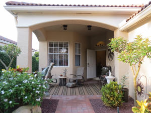 Custom villa with covered front porch-arched doorways, inset tile accent entry, diagonal 18'' tile, Formal DR. Tray ceilings, skylight,Enormous L-shaped, totally screened, covered patio. High ceilings in the sunny kitchen, tall cabinets, pantry, granite counters. Bay window breakfast nook. Window treatments & appliances included. New Paint inside and out!floor plan & add'l comments in ''documents''.Too many upgrades to list. Newer a/c and hot water unit! Move in Condition. NOTE:with a villa, the lawn watering, mowing, landscaping maintenance, house painting, roof cleanings, basic cable, security monitoring, included in HOA fee!Furniture available under separate contract.