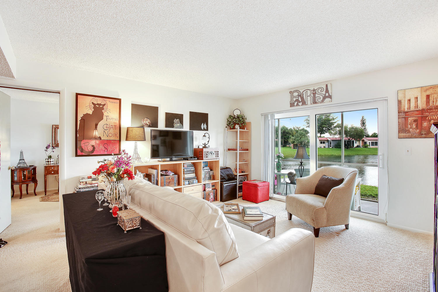 Move right in to this beautifully maintained 2 bedroom, 2 bathroom condo in Golden Lakes! Enjoy the peaceful serenity of the lake as you look out of your first-floor unit, all protected by hurricane impact windows and sliders. Golden Lakes has a manned 24/7 guard gate, two clubhouses, many heated pools and spas, breakfast and lunch cafes and many social activities, making it one of the premier Active Adult Communities in the Palm Beach area. Located very close to Florida's Turnpike, the location is ideal as well. Don't miss this one!