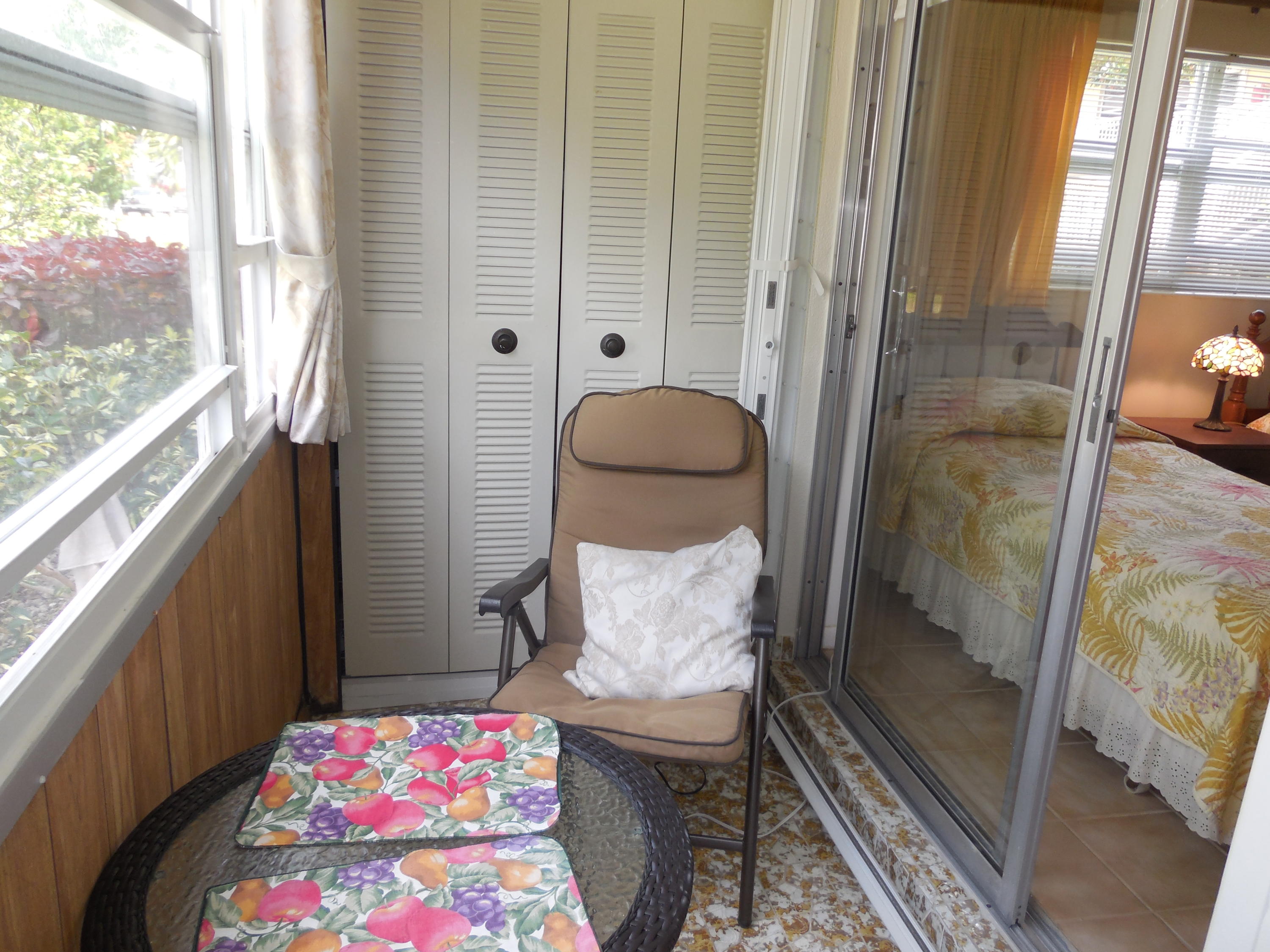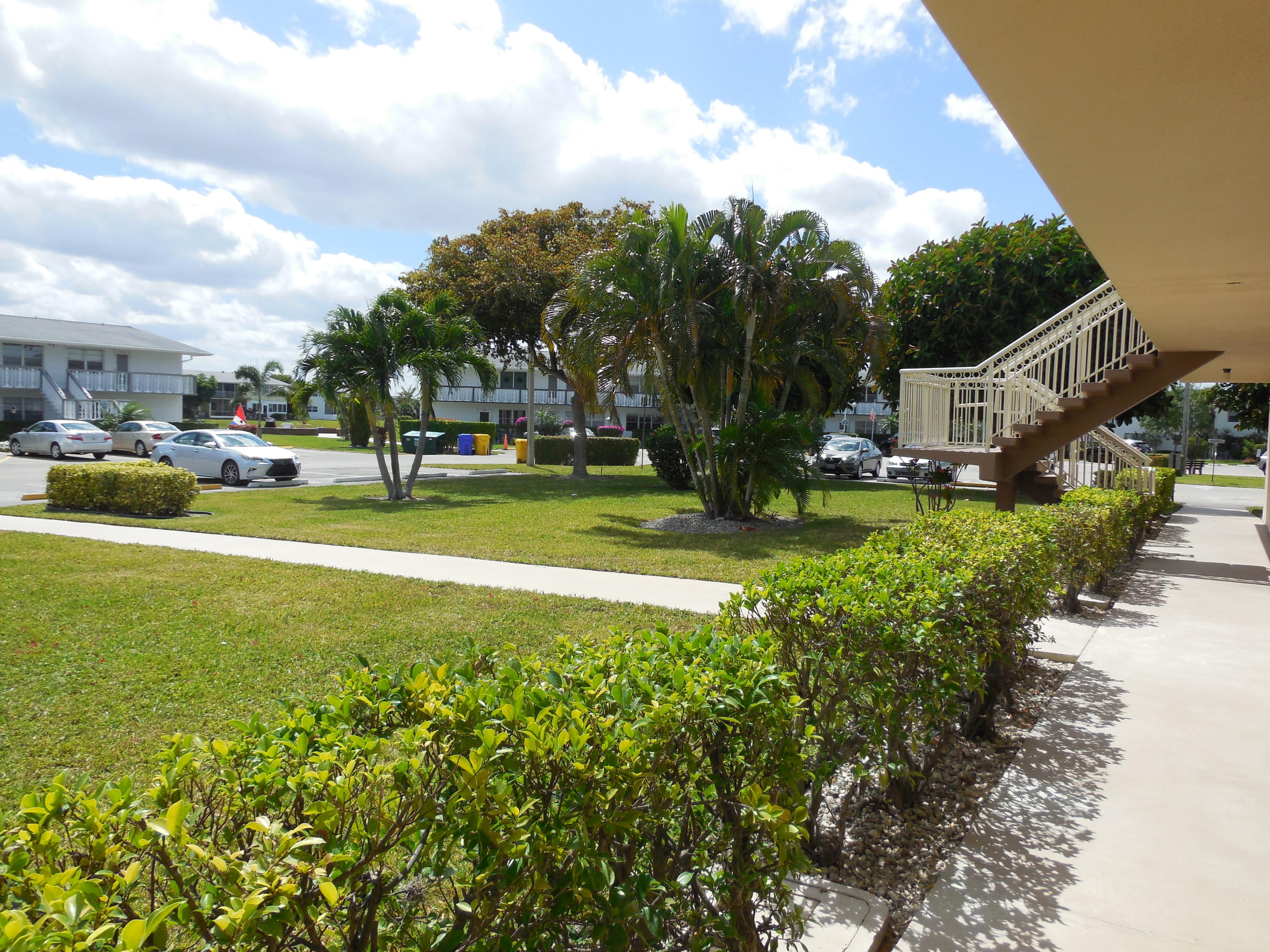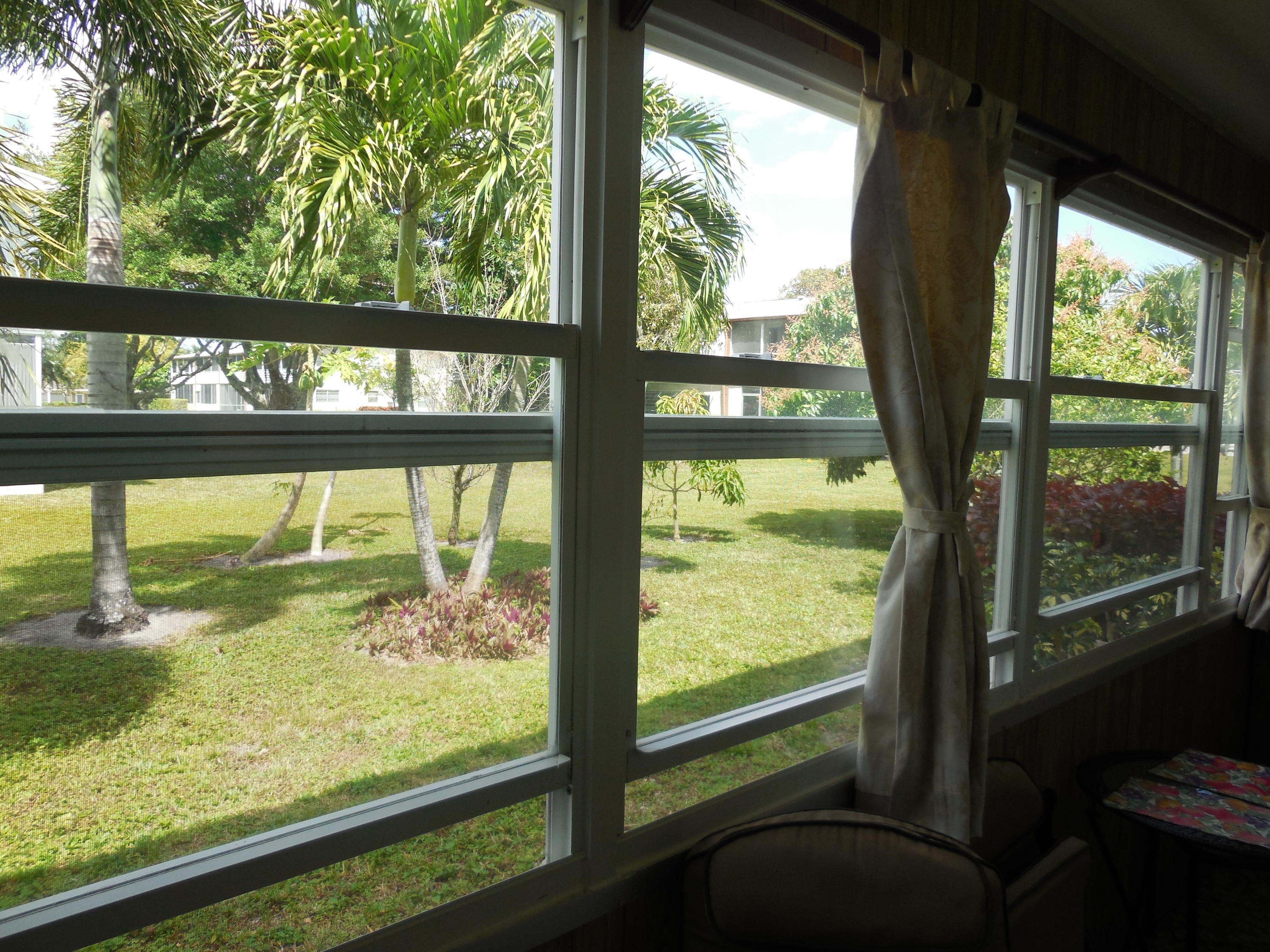 Super clean, bright and airy ground floor corner unit. Two bedroom, one and one half bathrooms. Impact windows and doors all around. Enclosed patio on lush garden. Walk-in shower in updated bathroom. Well maintained and recently updated building. Walking distance to East gate and clubhouse.