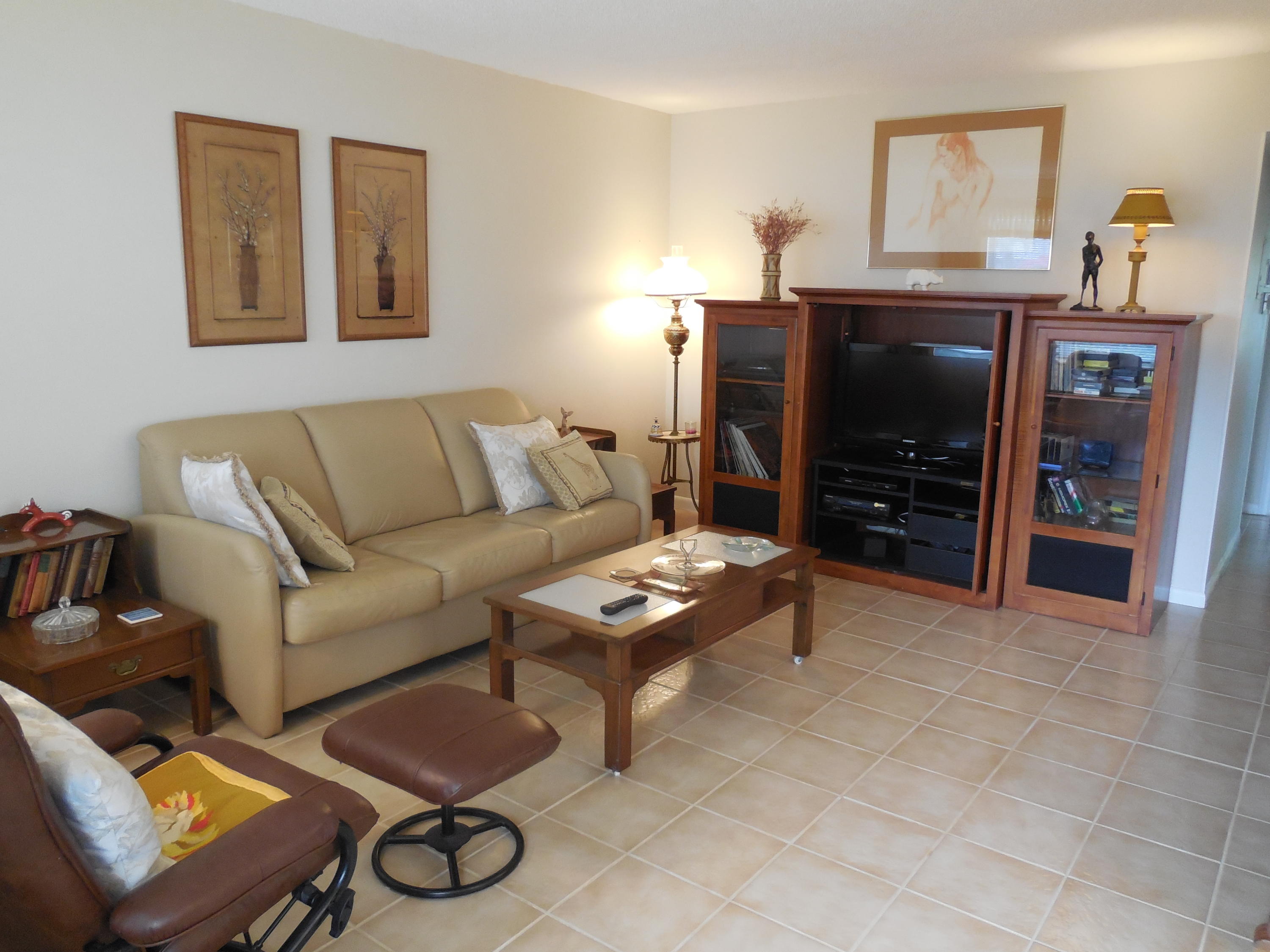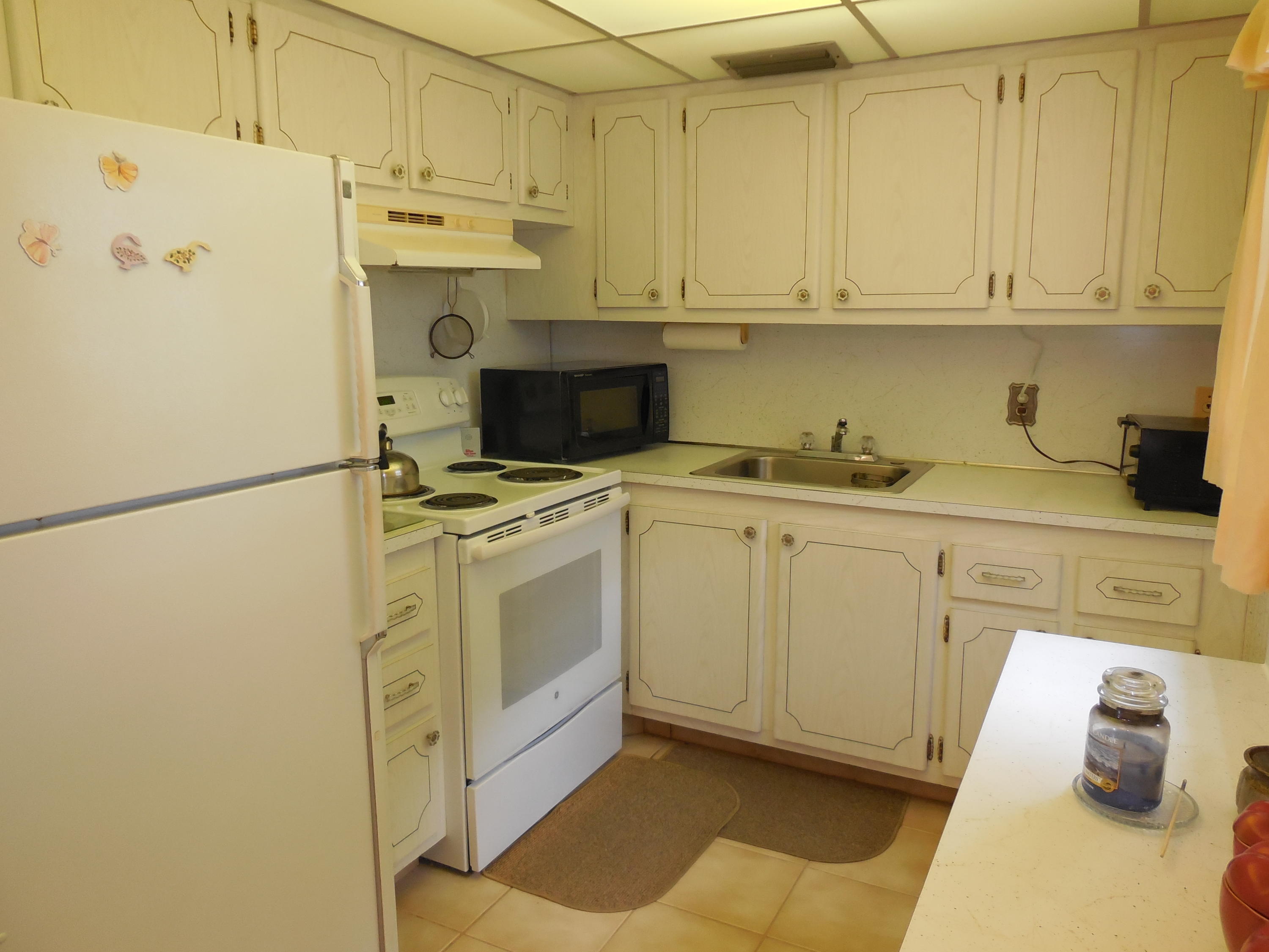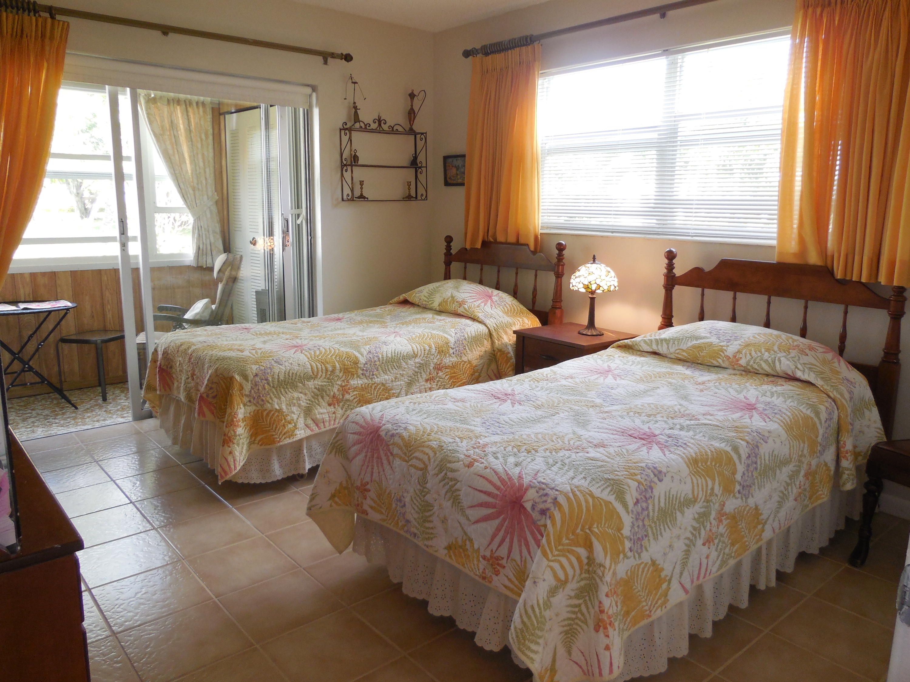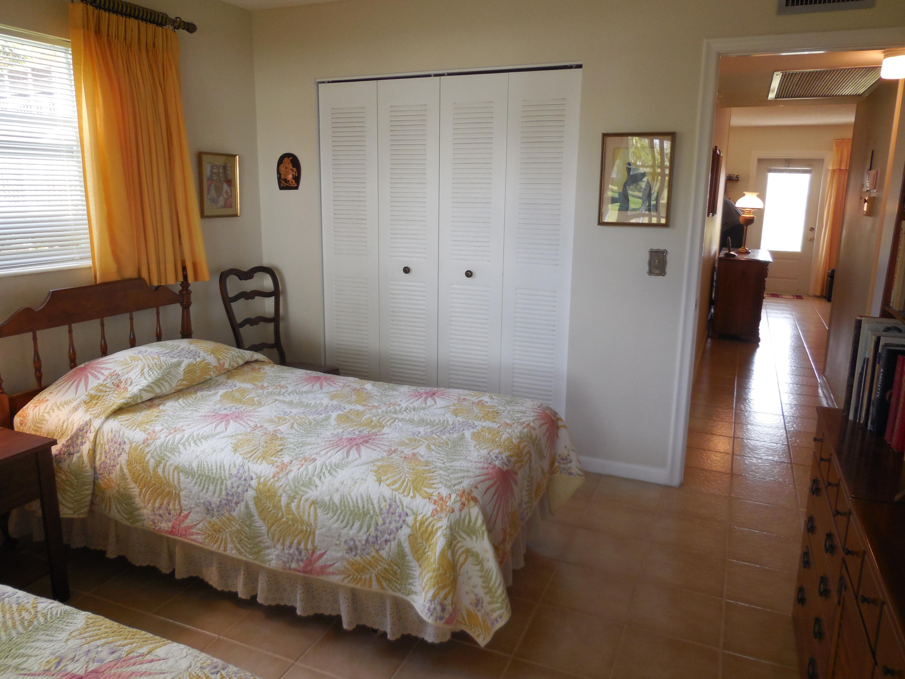 Super clean, bright and airy ground floor corner unit. Two bedroom, one and one half bathrooms. Impact windows and doors all around. Enclosed patio on lush garden. Walk-in shower in updated bathroom. Well maintained and recently updated building. Walking distance to East gate and clubhouse.