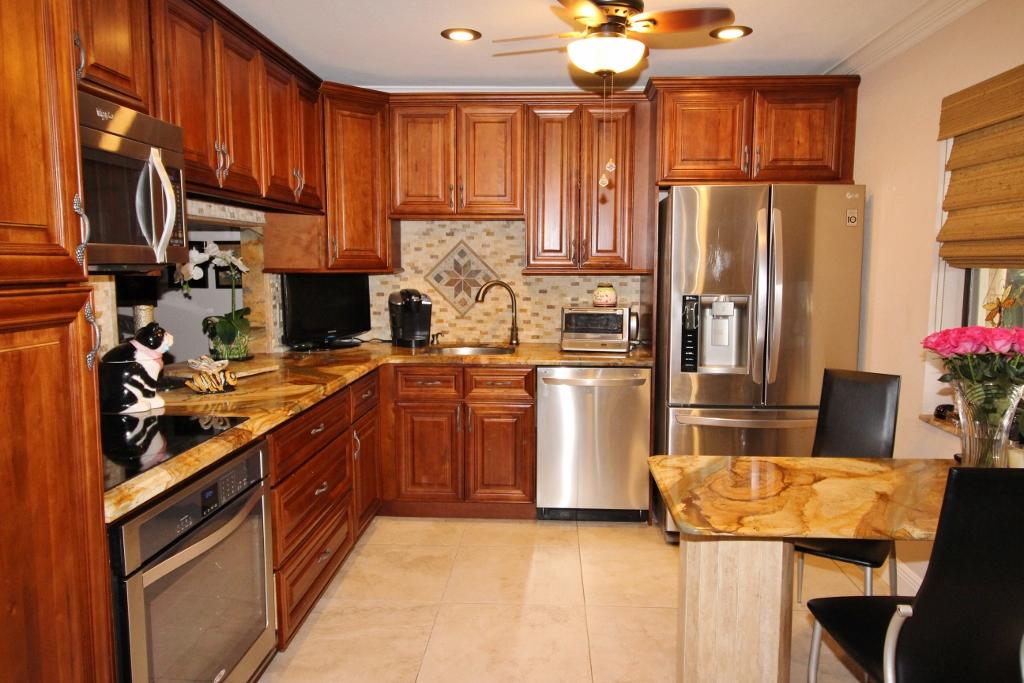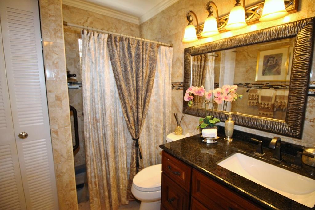 WOW! This home belongs in Palm Beach. Completely redone from top to bottom!!!. New crown molding, large base boards, travertine marble tile throughout, Kitchen with upgraded granite and stain steel appliances, new cabinets with pot drawers, pull outs. Complete renovated bathrooms. Enclosed patio with Air Condition. Additional Closets added. Assigned parking. Too many extras to mention them all. Must see -- Really beautiful condo with everything imaginable. Close to shopping, City Place, Theatre, Doctors, Hospital, Turnpike, I95, everything you could want within a five mile radius.