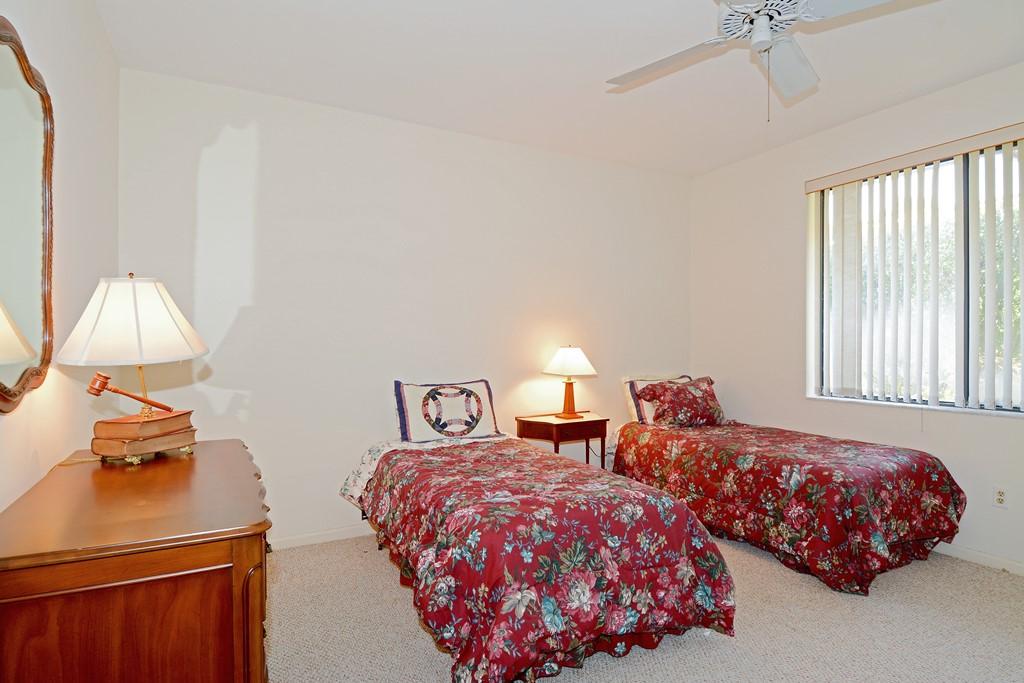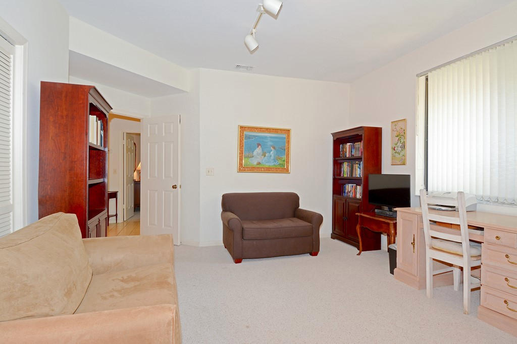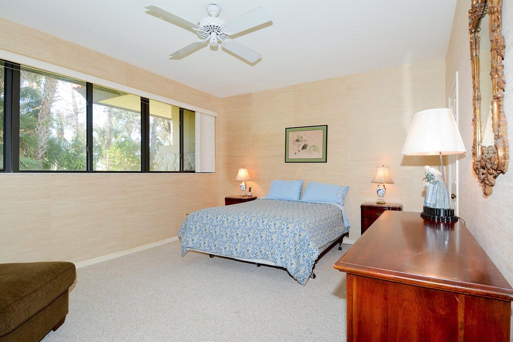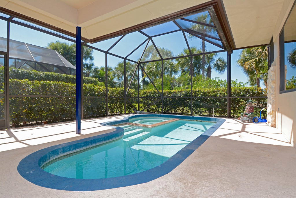 Spacious & private 3 bedroom, 2 bath in desirable Sand Drift Villas. Tranquil and serene garden overlooks The Breakers Reese Jones Golf Course. Pretty water view form large master suite. Heated and screened pool and spa with covered loggia. Cathedral ceilings, fireplace and french doors from both living and master bedrooms open onto pool and garden. Generous room sizes with walk in closets. Extra large over sized 2 car garage. Breakers West and Mayacoo Lakes Club memberships are available but are not mandatory. Owner is motivated. Bring offers. Included in maintenance fee is cable, lawn, maintenance exterior, roof maintenance, reserve fund and Manager. Furniture negotiable for purchase.