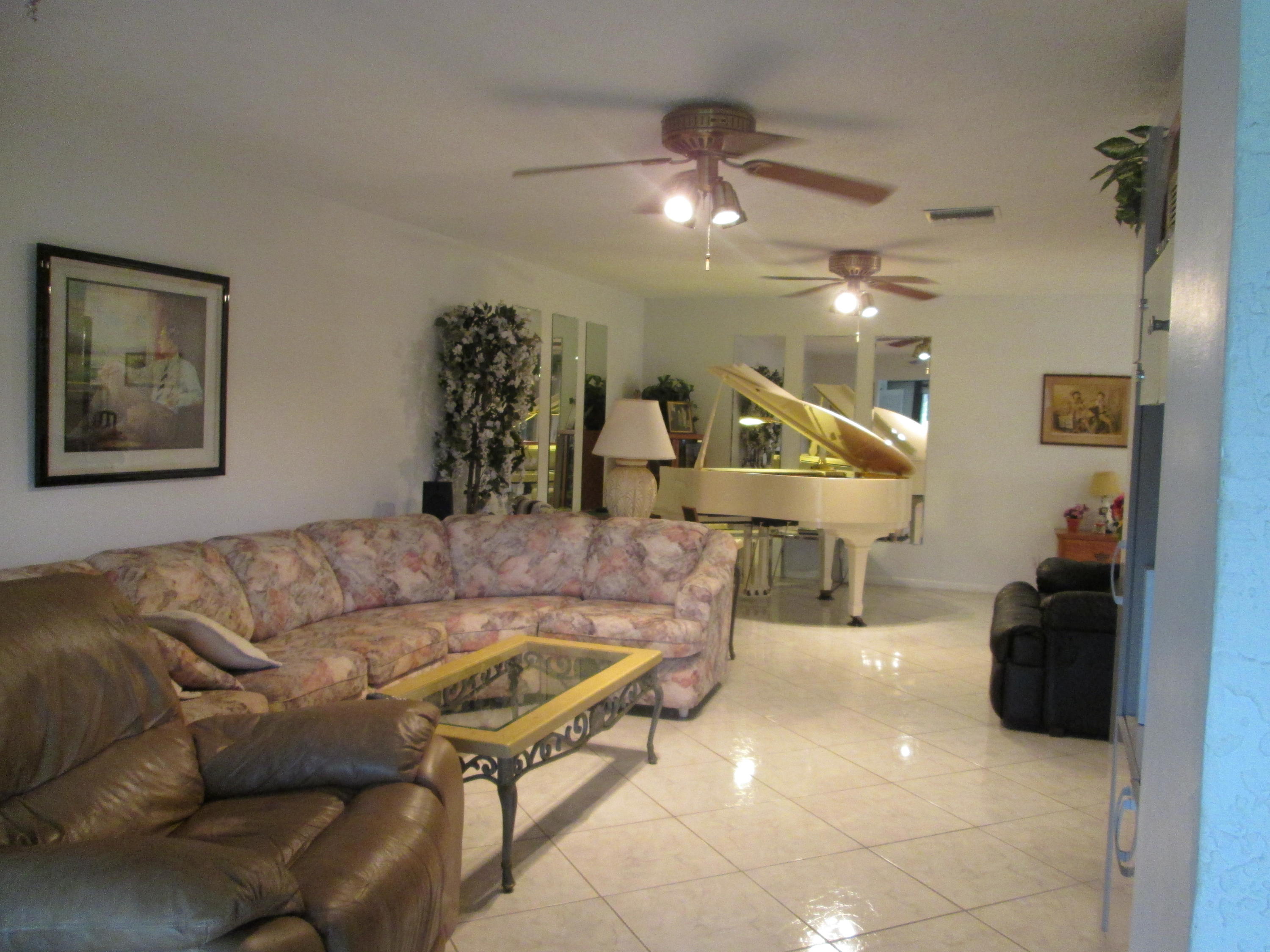 Large Corner 2/2 VILLA in newer Phase B section. Largest model in Golden Lakes. Tile floors, carpet BR's, Kit updated about 8 yrs ago. Lg air conditioned 21'x10 Enclosed patio with Sliding Glass Doors. Extra storage closet on patio. Two walk-in closets in Master Bedroom. Satellite Pool for Lake Susan residents. Active 55+ guard gated community with full time social director. Courtesy Bus two days a wk to grocery, malls & shops. Maint includes Comcast cable, water/sewer, bldg. insur, recreation facilities, etc.