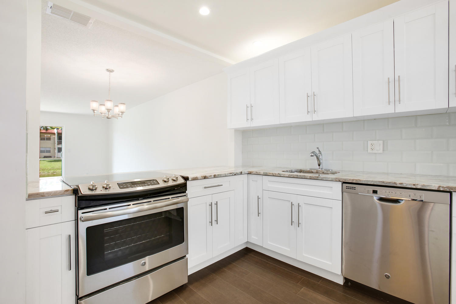 NO DOGS allowed in Phase A, GORGEOUS, No one above you, no one under you - your own one story villa on the water. Gated 55+ active community (1 buyer needs to be 55+). Beautiful kitchen with marble/quartz countertops, soft close cabinets, beveled glass subway style backsplash, stainless steel appliances. New floors throughout, stranded bamboo in grey/ash. Master bath has gorgeous marble subway style walls to the ceiling in tub area. Laundry hookup in the unit. Community with pools, clubhouse, library, etc., and tons of activities to keep you busy. Close to beaches and shopping. Isn't it time you treated your parents and bought them their place in the Sunshine State? Or buy your winter getaway! Where will you find a new villa for this price, nowhere..2 indoor cats OK.