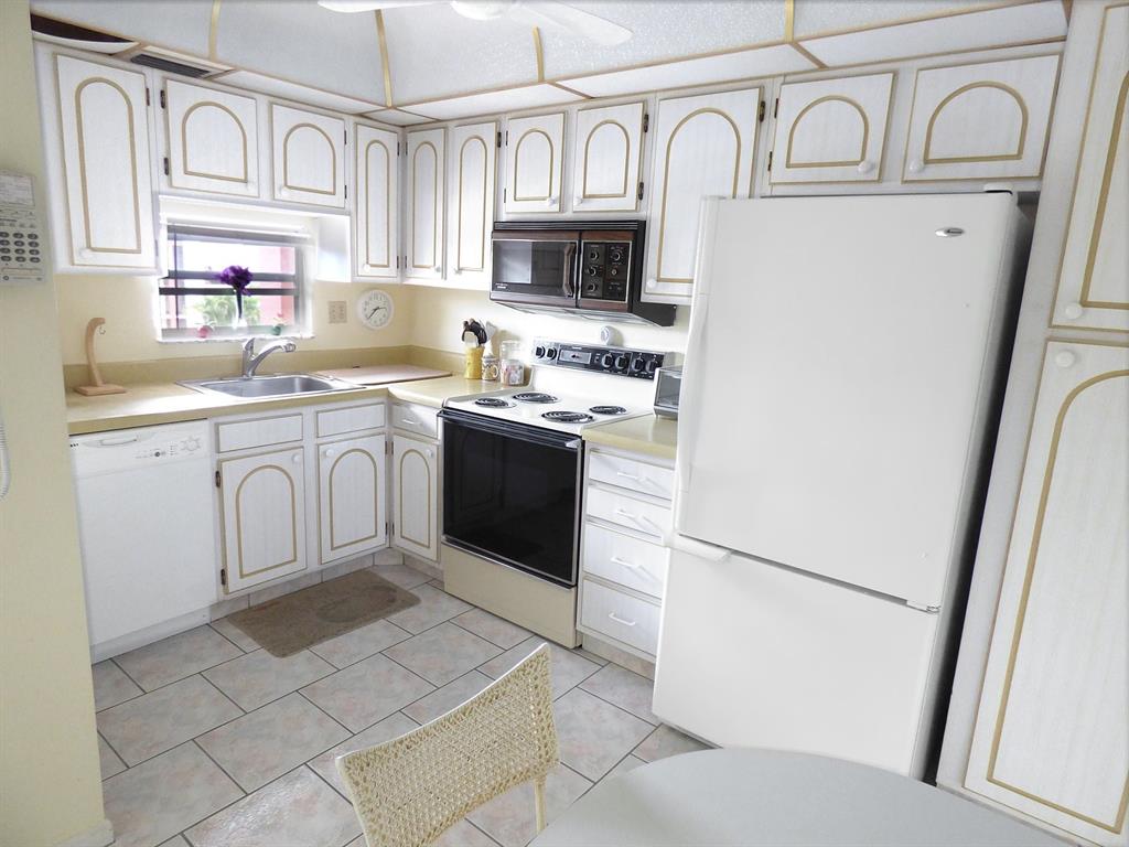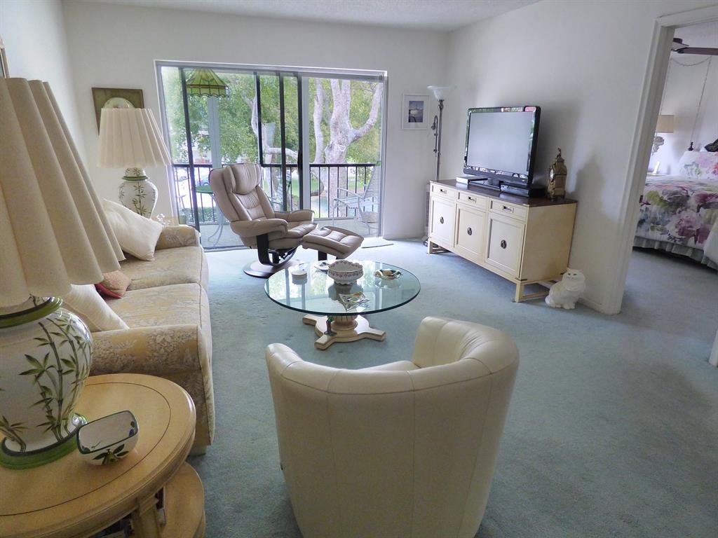 Full 2 bedroom in quiet location at end of cul-de-sac with pond view. New air and completely remodeled master bath. Kitchen has pull out drawers and replaced fridge and dishwasher. Guest bath has a replaced cabinet and toilet. master closet built-ins. Assumable svc. contract. Paid up rec lease. Free golf , 14 tennis courts, 7 pools, theater, fitness center, restaurant , 24 hr security,. Assoc. represents housing for older persons authorized (HOPA).. See below for occupancy qualifications.