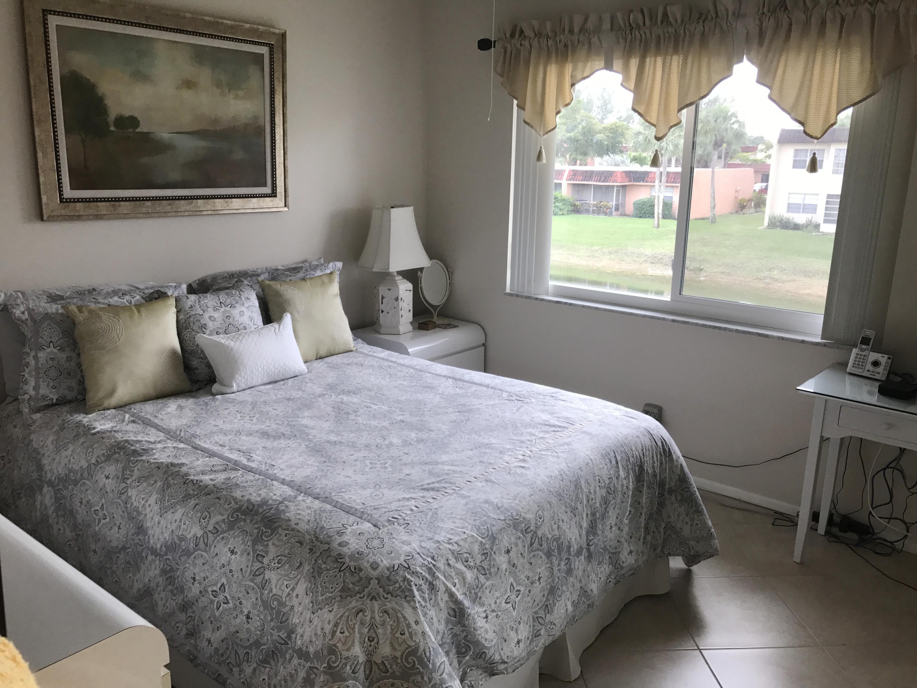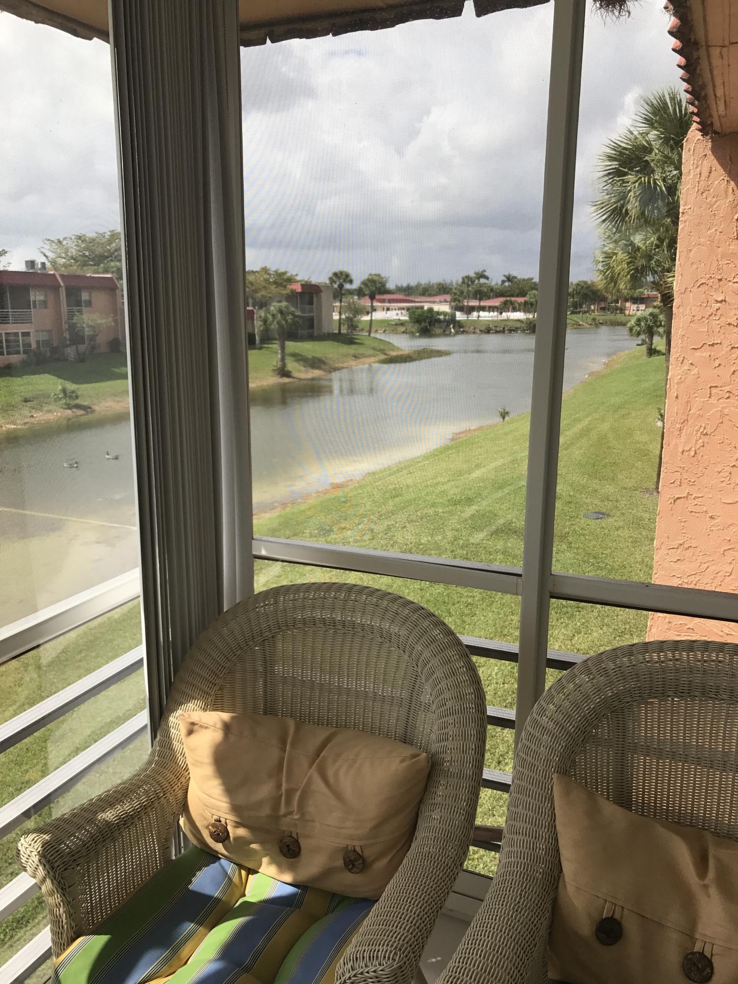 Your work is all done! Time to relax and enjoy morning coffee sitting in your screened-in lanai overlooking the lake, clubhouse and pool.This unit has been well loved and cared for. Many updates have been added to make it modern and comfortable. All tile flooring. New sliding windows and screens in the lanai. New highhat lighting throughout. Guest bath and master bath have been beautifully redone, Both bedrooms and kitchen windows have been updated to impact resistance. (NO SHUTTERING NEEDED). The kitchen ceiling has been raised and crown molding has been added to the cabinets for display possibilities. Stacking washer/dryer. Newer air conditioner and waterheater.The unit can be negotiated to be sold completely turn key.LARGE STORAGE UNIT INCLUDED WITH PROPERTY