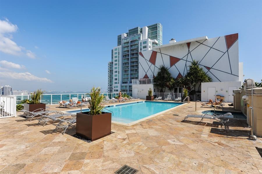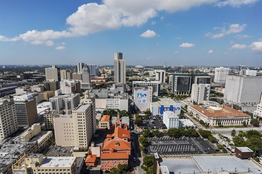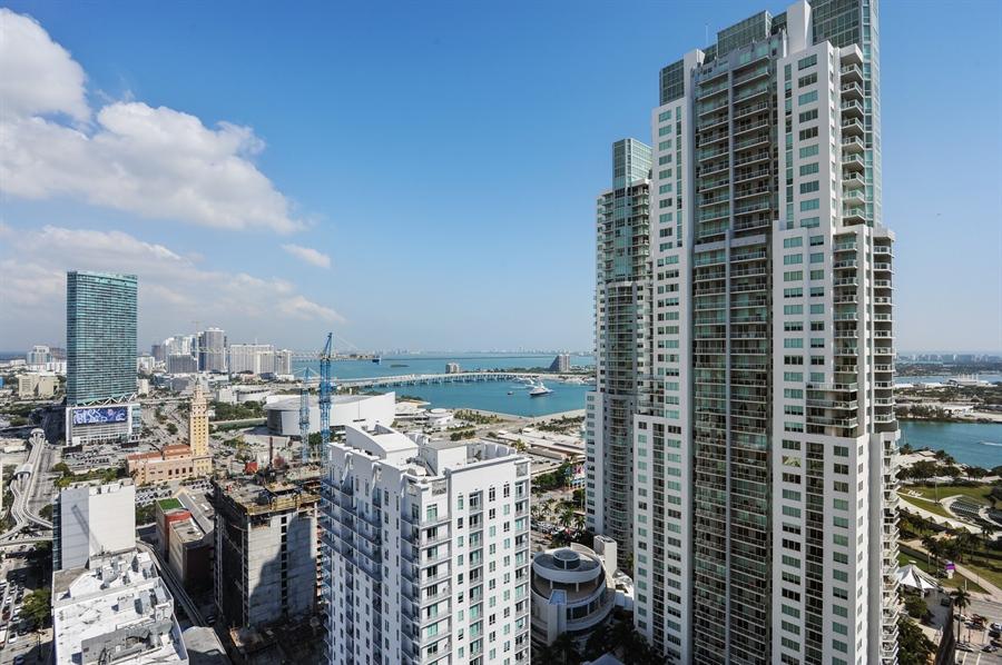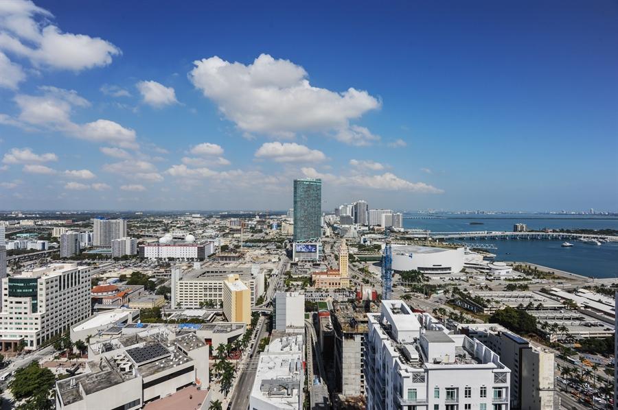 VIEWS, VIEWS, VIEWS 32nd Floor - Come and view the nicest 2 bedroom / 2 bath corner unit for sale in the building. With its wraparound balconies, the views of the bay, city, and downtown are truly spectacular. Contemporary open floor plan loft features 12ft ceilings, beautiful updated kitchen with new granites counter tops, stainless steel appliances, renovated bathrooms, wood floors, custom built- ins, plus an in-unit washer-dryer. This is the largest floor plan and with its corner location there is an abundance of natural light. Enjoy downtown luxury living at its best. Building has 24-hour security, a full-time concierge at the front desk, fitness center, social room, rooftop pool as well as a ground floor lap pool. Close to all highways, Brickell, Bayside and American Airlines Arena.