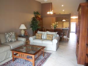 Nicely updated villa on the water in active resort style community. 55+. Accordion hurricane shutters, screened entry & extended and tiled screened patio overlooking the water. Tile on diagonal through out. No carpet! Natural wood cabinets. Open Den. Shower in master recently upgraded. A/C replaced in 2012. All appliances are covered by service contract. Garage is wired for a generator. Monitoring of alarm system, basic cable & lawn care are included in maintenance fee. Home is offered unfurnished but some of the furniture is available separately as well as the generator. Close to resort style clubhouse with lots to do! Close to shopping, dining, entertainment, cultural centers and more! Move in ready! Must see!