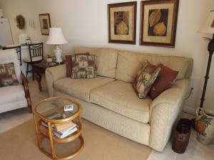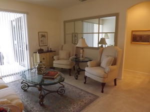 Charming villa located on the golf course. 3 bedrooms, 2 bath, family room, living room, large screened patio, single car garage. End location with extra parking. Walk to the clubhouse. Skylight in kitchen. Tiled screened patio. will sell furnished.