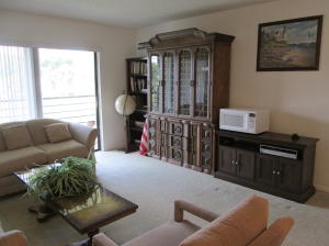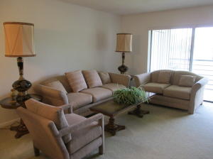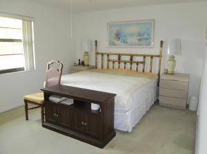 Light and bright 2nd floor condo with new laminate wood in hallway and kitchen. New Samsung front loading washer & dryer. No wallpaper. Move-in conditon unit. Furniture negotiable. Walk to satellite pool and Phase B Clubhouse. Courtesy Bus runs two days a week to grocery store, shops and malls. On site manager M-F. Full time social director schedules shows, trips, movies, entertainment. Pet friendly, 30 lb limit. Great location. Approx 15 min to downtown West Palm Beach, Kravis Center for Performing Arts and City Place.