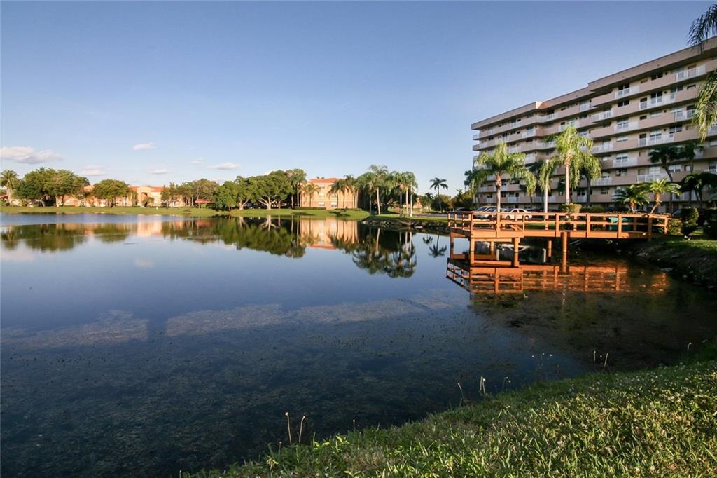 Beautiful 2 bedroom 2 bathroom condominium in sought after Coronado at Jacaranda. Real wood flooring throughout the unit except kitchen. Open and airy floor plan. Kitchen has tile floors, white cabinets, newer appliances and spacious. Large living/dining area. Spacious master bedroom w/walk in closet. Both bathrooms have been updated. Category five Impact glass. Screened in Patio that overlooks an amazing view of the lake and golf course.