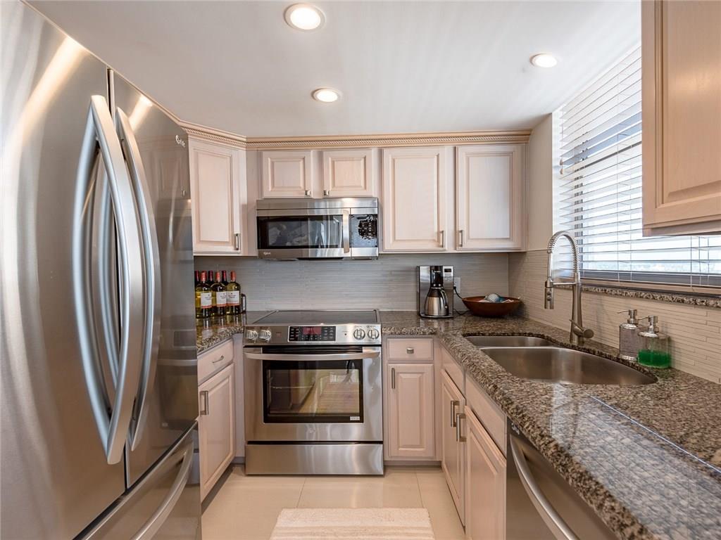 Absolutely stunning oceanfront condo that is totally remodeled. The unit features 24" zero grout line porcelain tile throughout, solid wood cabinets in the kitchen, granite counter tops, brand new LG SS appliances, master bath has granite vanity, glass shower doors, large closet, guest bath has a modern finish all brand new, impact windows, direct ocean view, a/c 2 years new, and so much more. The building amenities include private beach access, covered parking, heated pool. This is a must see!