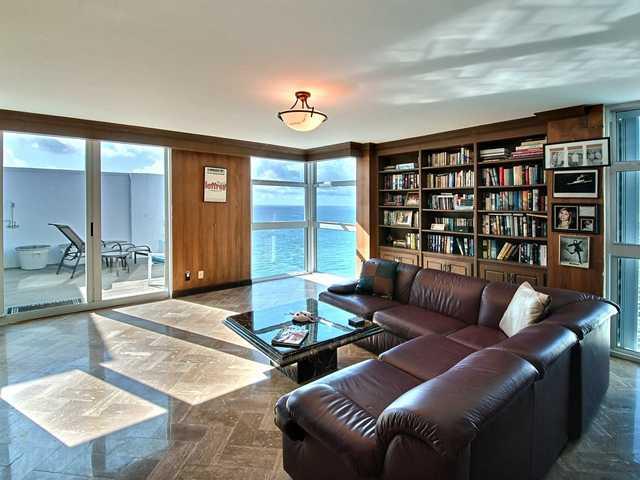 Breathtaking direct ocean views from this SE corner two-story penthouse in the sky! This one-of-a-kind unit was the original developers personal residence and is the very best this oceanfront building has to offer. Spectacular ocean views all the way Sout h to Miami Beach and wonderful views of the city, Intracoastal waterway. Open updated kitchen with granite counters, elevator or winding staircase to second floor master with Vegas style marble bathroom. Two prime covered parking spaces at lobby entrance.