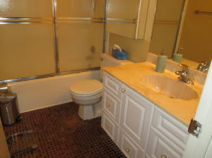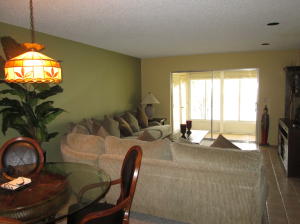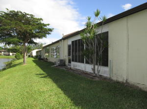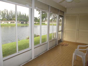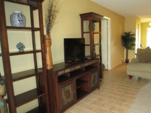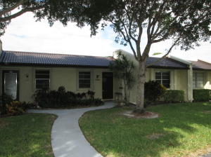 Move in condition Villa with enclosed patio, tile floors,(partial carpet in LR) newer appliances, new water heater, accordion shutters. Updated bathroom vanities. Furnished or unfurnished & can be sold ''turn-key''. Extra storage closet added on patio. Active 55+ guard gated community with courtesy bus 2 days a week to grocery, malls, shops etc. Full time social director scheduled shows, trips, movies etc. Courtesy Bus 2 days a week to grocery, shops, malls etc. Approx 15 min to downtown WPB, Kravis Center and City Place.
