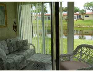 LOVELY UPDATED VILLA, FULL 2/2, GLASS ENCLOSED PATIO W/FULL LENGTH SLIDERS.FANTASTIC WATER VIEW! WASHER & DRYER, NEWER A/C, UPDATED BATHS, CERAMIC TILE THRU-OUT, WITH NEW HARDWOOD FLOORS IN THE BEDROOMS. KITCHEN HAS NEW STAINLESS STEEL APPLIANCES ALL THREE YEARS NEW. SOME FURNITURE NEGOTIABLE IF NEEDED. LOCATED IN GATED & SECURE COMMUNITY, LOTS OF AMENITIES TO ENJOY, 2 CLUBHOUSES, HEATED POOLS & SPA HOT TUBS,GYMS,CAFES FOR BREAKFAST & LUNCH. ACTIVITIES GALORE! TWO SOCIAL DIRECTOR TO KEEP YOU BUSY & HAVING FUN WITH SHOWS, TRIPS, CARDS, CLUBS,SOCIAL EVENTS, BINGO & SO MUCH MORE. LOCATED CLOSE TO SHOPPING, RESTAURANTS & TURNPIKE! AIRPORT & OCEAN A SHORT DRIVE AWAY ALSO! PARADISE AWAITS!