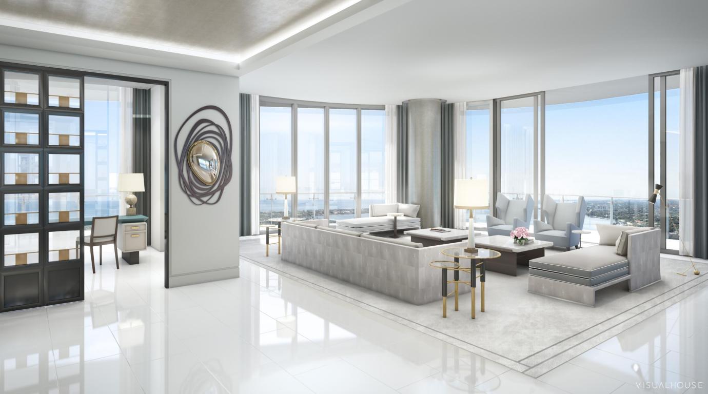 Iconic 25-story new development with unobstructed ocean/Intracoastal views steps from Palm Beach. Flow-through residences offer dramatic ceiling heights, floor-to-ceiling glass, expansive balconies. Amenities include pools, salon, spa, gym, valet.
