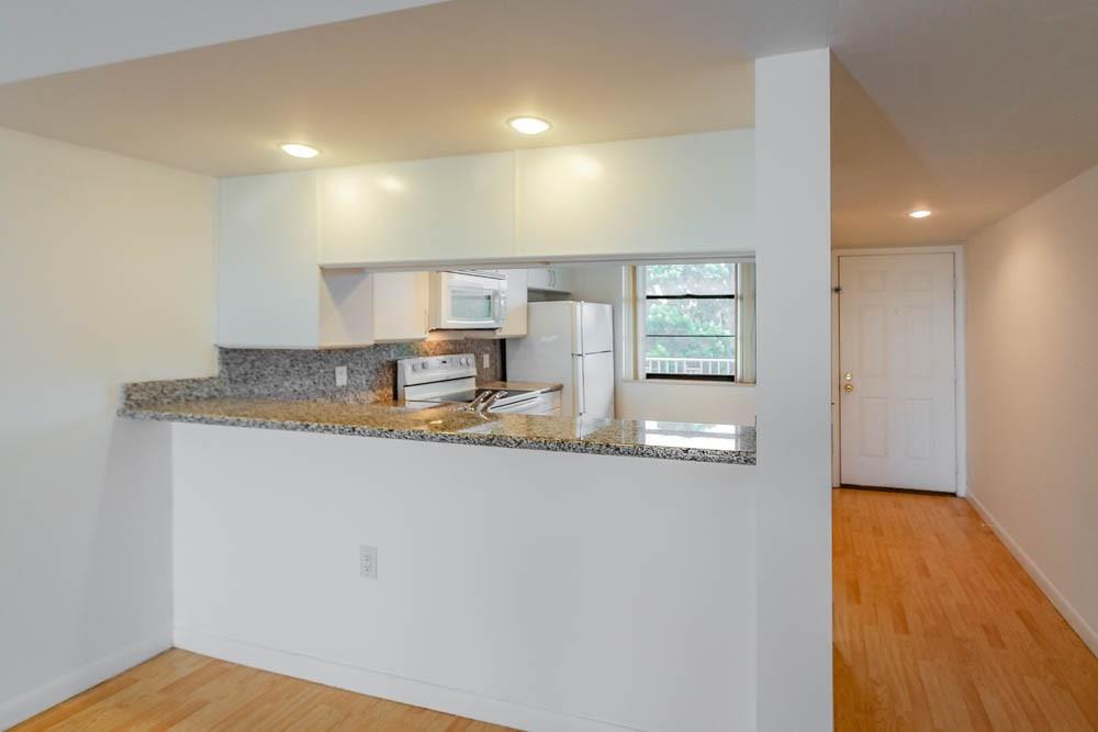 Beautiful lake and golf-course view from this top floor unit in secluded Pine Island Ridge condo. 2/2 with bonus room, nice floors, open floor plan. Great location!