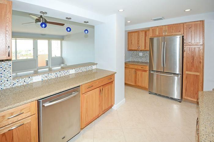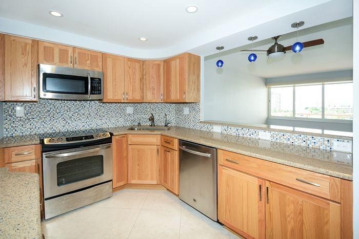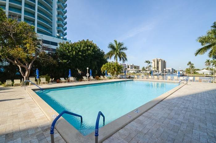 You'll love this stunning apartment with gorgeous city skyline and ocean views! It features a beautiful remodeled open kitchen with Quartz countertops and Kraft Maid cabinets! With new hurricane impact windows, custom Plantation Shutters, new electrical panel, new plumbing fixtures, brand new Hot Water Heater, central A/C, porcelain tile floors, on the Intracoastal Waterway, you will have it all! The water taxi is at your front door and the heated pool is in your back yard. You will love living here!