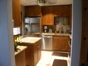 This beautiful villa has been redone from top to bottom with no detail left undone. Custom made cabinets in the kitchen, with a moveable cooks island, matching custom made wooden closet doors, granite counter tops, stainless steel LG appliances including washer & dryer. All new ceramic tile floors, crown molding and new baseboards, paint, plantation shutters,5 beautiful ceiling fans and track lighting in dining room. This is a corner unit and has a special surge protector on the electric outside box to protect your electronics. Textured ceilings and recessed lighting in the kitchen, all new light fixtures in hallway, new front door, all around impact hurricane windows, enclosed back porch with privacy divider.