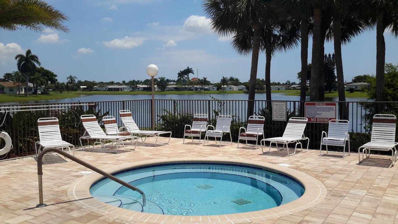 GREAT LOCATION CLOSE TO SHOPS, RESTAURANTS, DOWNTOWN CITY PLACE, KRAVITZ PERFORMING ARTS CENTER.24/7 GATED COMMUNITY WITH MANY AMENITIES, ALL INCLUDED IN THE HOA FEES,SUCH AS,EXECUTIVE GOLF COURSE NO GREEN FEES, CLUBHOUSE, LARGE HEATED POOL, HOT TUB,TENNIS, SHUFFLEBOARD COURTS, BOCCE COURTS, SAUNA, GYM WITH SHOWERS, GAME ROOM WITH CARD TABLES, POOL, PING PONG.AUDITORIUM WITH KITCHEN, STAGE, SOUND SYSTEM FOR MOVIES, LIVE ENTERTAINMENT,ARTS & CRAFT, LIBRARY, TWO ROOMS FOR COMMUNITY SPONSORED ACTIVITIES & MORE!THIS VILLA 2/2 PLUS DEN IS IN A GREAT CONDITION, IT IS A CORNER UNIT WITH GREAT LAKE VIEW TO THE SIDE.BRAND NEW CARPET, TANK LESS HOT WATER SYSTEM, NEW WINDOW BLINDS, VERTICAL, SMOKE DETECTOR, OVERHEAD KITCHEN LED LIGHTS. TOTALLY REFURBISHED;AC COMPRESSOR, ELECTRIC STO