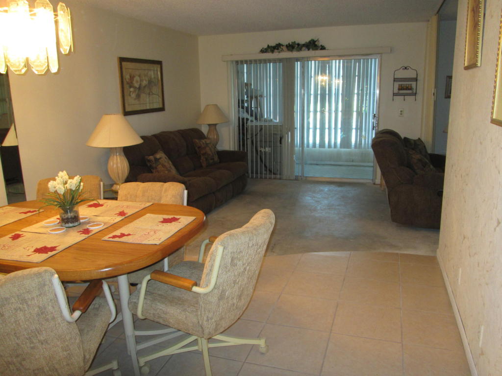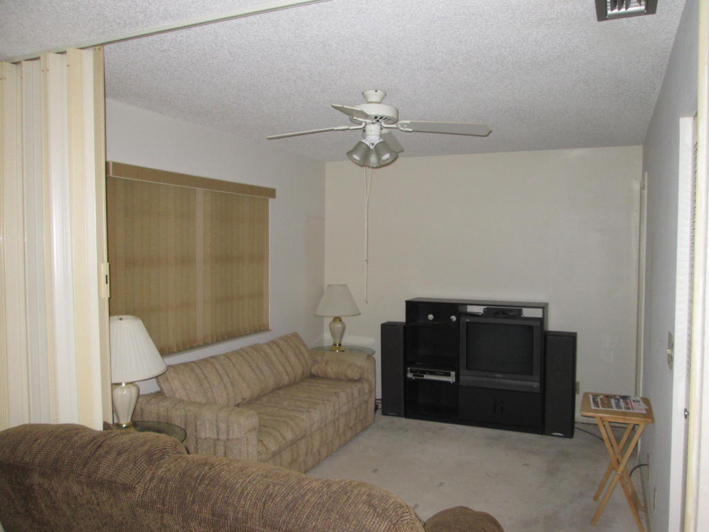 2/2 convertible Villa. (2nd BR is open to the LR) accordion door to privatize the 2nd BR. Area ideal for company. Convertible BR as closet & full bath with walk-in shower. Unit needs new carpeting. Lg 24x6 enclosed patio with full size W/D. Short walk to clubhouse.Active 55+ guard gated community with full time social director who schedules shows, trips, movies etc. Discover Golden Lakes. Malls, shops & grocery nearby.