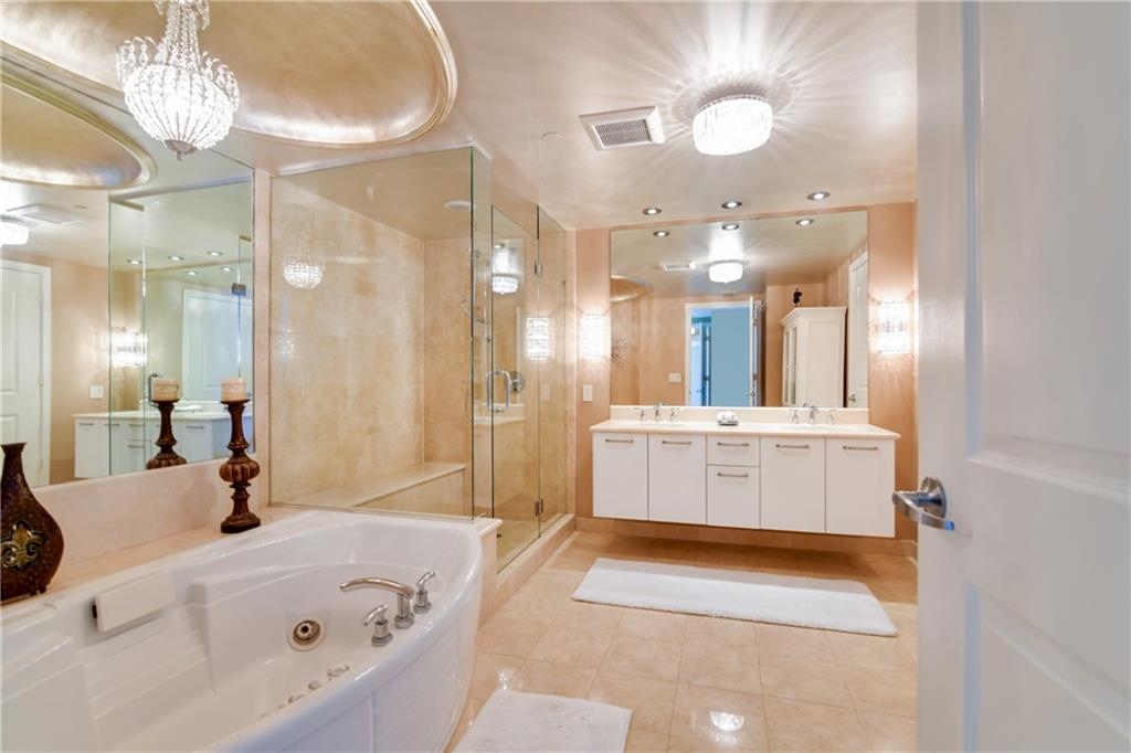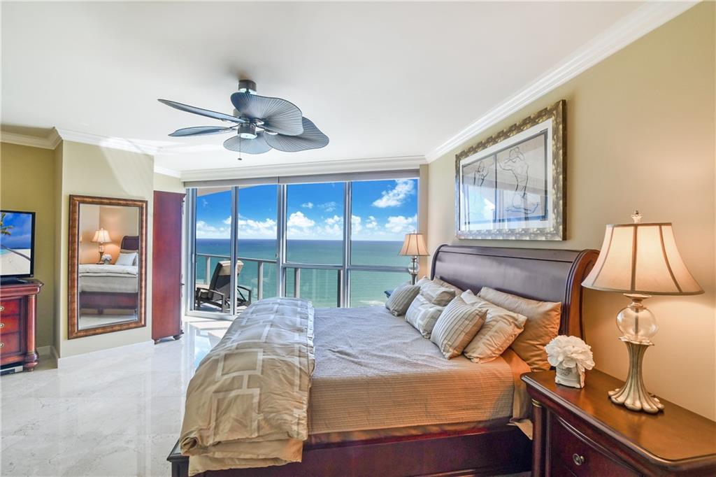 STUNNING SKY HOME WITH THE BEST OF EVERYTHING! PRIVATE ELEVATORS OPEN TO MAGICAL OCEAN VIEWS. IMPECCABLE MARBLE FLOORS THROUGHOUT. VENETIAN PLASTER IN THE FOYER WITH CRYSTAL CHANDELIER AND SCONCES. CROWN MOLDING THROUGHOUT THE CONDO. THE SNAIDERO CUSTOM KITCHEN BOASTS MARBLE BACKSPLASH, SUBZERO REFRIGERATOR,MIELE DISHWASHER, THERMADOR COOKTOP AND OVEN! EACH BEDROOM HAS OCEAN VIEWS. THE OVERSIZED MASTER SUITE IS A WOW! CUSTOM WALK IN CLOSET AND SEPARATE LINEN CLOSET. FOR THAT LUXUROUS RELAXING SOAK IN THE TUB, THE MASTER BATH BOASTS GOLD FOIL PAINT ON THE COFFERED CEILING OVER THE JACUZZI TUB AND A VIEW OF THE CRYSTAL SCONCES SPARKLING ON THE MIRROR. EACH BEDROOM HAS BLACKOUT SHADES. SOLD FURNISHED. IF YOU HAVE AN EYE FOR DETAIL, THIS RESIDENCE IS FOR YOU!