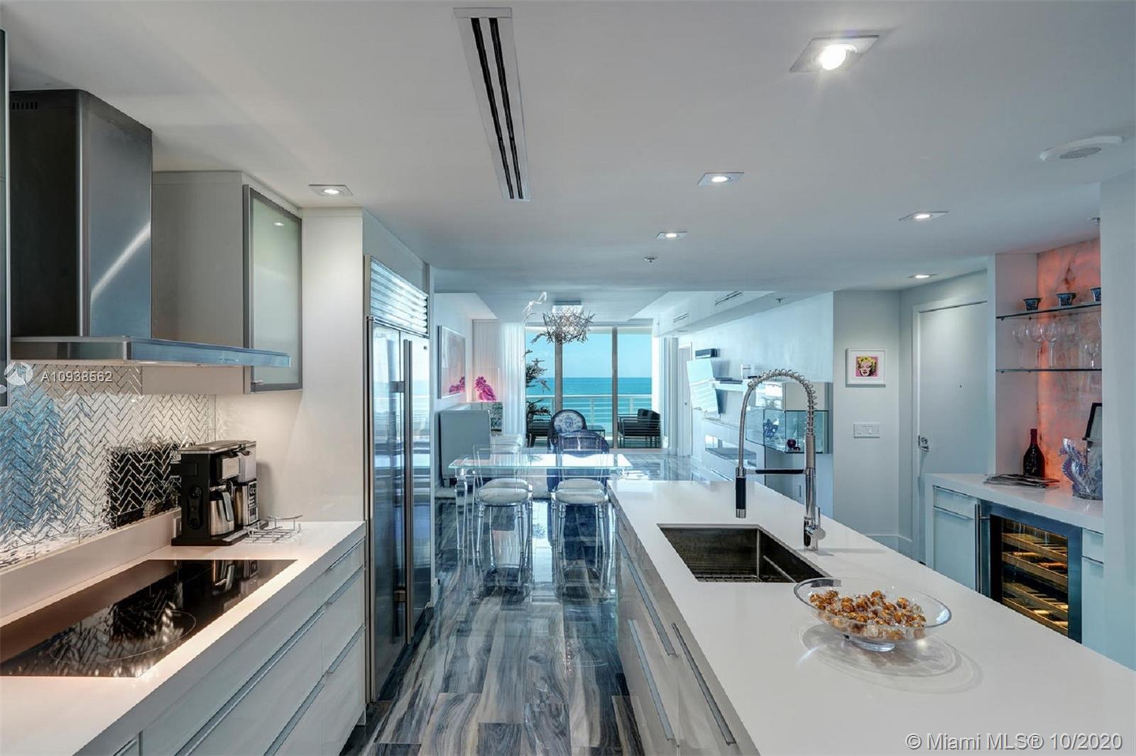 WOW! This impeccably renovated direct ocean view 2BE/2BA apartment features the best of interior design: gorgeous porcelain floors, top of the line kitchen; Poggenpohl glass veneer cabinets, Subzero & Miele appliances, quartz & onyx multi color changing center island & bar w/built in wine cooler. Master Suite w/walk in closet & chic "noir" bath w/Jaccuzzi tub. Both bath's cabinets & tile by Porcelanosa. Upgrades include; living room fireplace, recess lighting, black out & sheer window treatments, top line faucets, Toto toilets. Porcelanosa wave tile accent wall in the foyer. Mosaic is a luxury resort style building minutes from Faena district w/top notch services & amenities including infinity pool, hot tub, club room, theater, valet & concierge. Chandeliers excluded.