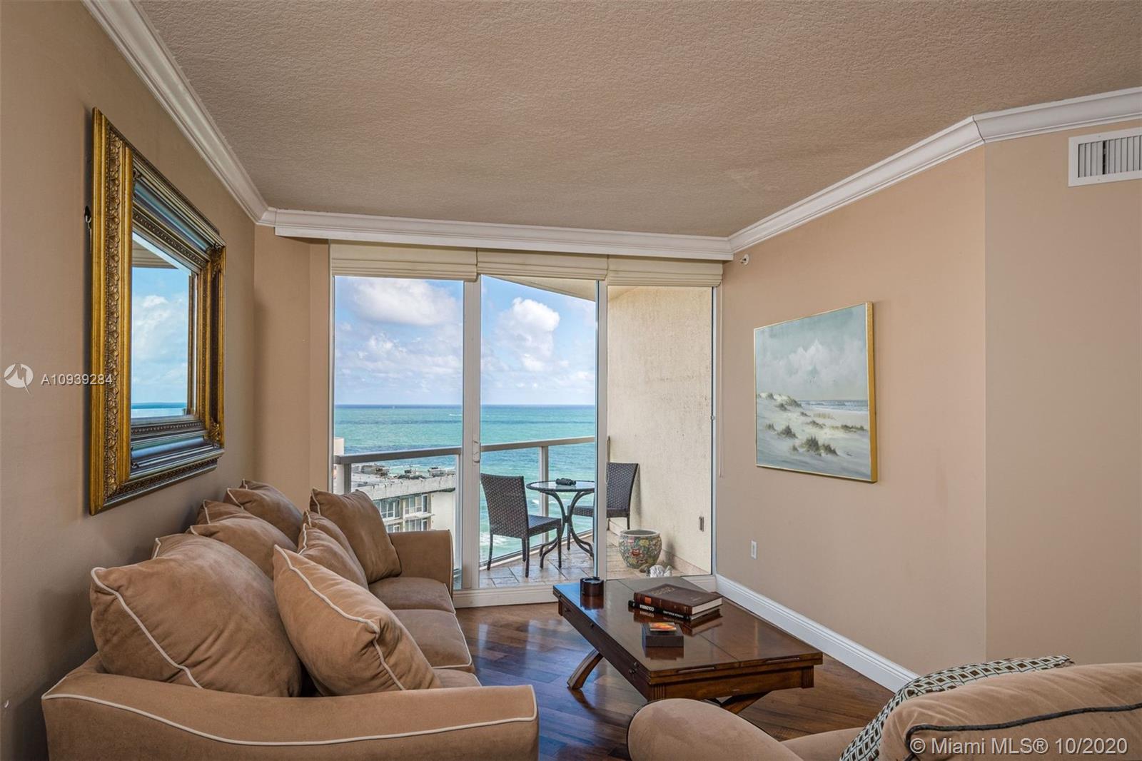 La Perla Unit F located in beautiful Sunny Isles, FL! Comfortable 2 bdrms/2 1/2 baths + den/home office or even convert to a 3rd bedroom. Features 2 walk in closets in the master bedroom+ an additional walk-in closet in the 2nd bedroom..,den/bdrm/home office also has its own closet. Nice balconies to enjoy your ocean views from each bedroom as well as main living area. A huge benefit to the new owner;Can be rented 12 times in 1 year. This property is being sold with 3.5 parking spaces plus a storage unit Use them all or rent some out for additional income. Oceanside building features beautiful pool area with large whirlpool spa, fitness & business centers, 24-hour valet & front-desk attendant. Live the life in South Florida!