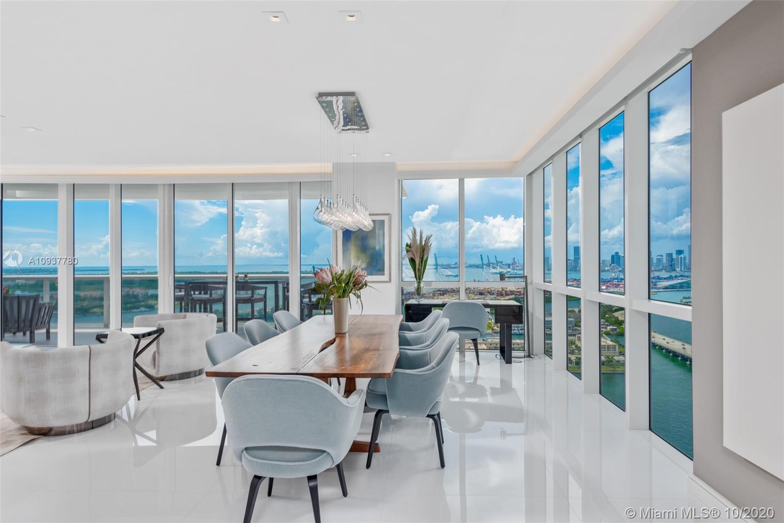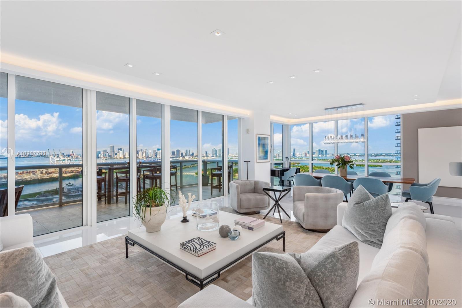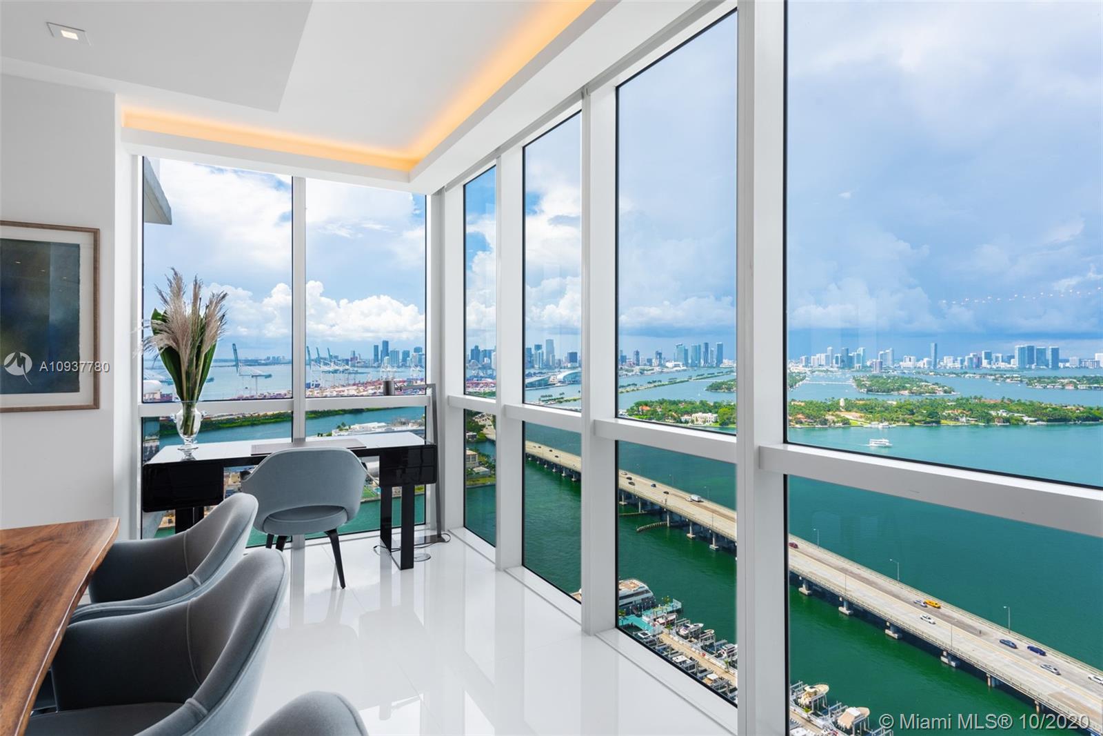 Enter this flow thru unit via an oversized pivoting door from your own private elevator lobby. This exquisite property features panoramic sunrises and sunsets from the 3 terraces. Elegant lines and floor to ceiling windows that open seamlessly to the expansive views capturing downtown, ocean and the bay. Totally renovated smart home with open layout, 3 Bed, 3.5 Baths, media room, temperature controlled glass wine room, white porcelain floors, electric shades, remodeled kitchen, custom cabinetry and designer finishes throughout. Murano Grande is a 1st class luxury building with a pool side restaurant (delivery to residence), tennis, gym, 24 hour security, valet and concierge. Located on Miami Beach Marina in the premier Sofi neighborhood with restaurants, beach, parks and shopping close by.