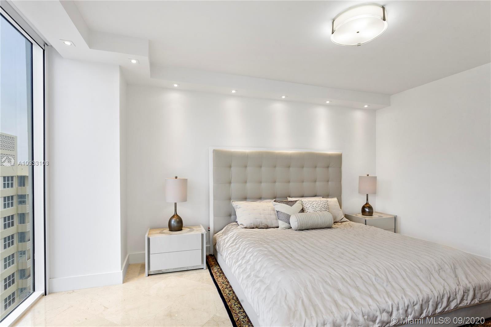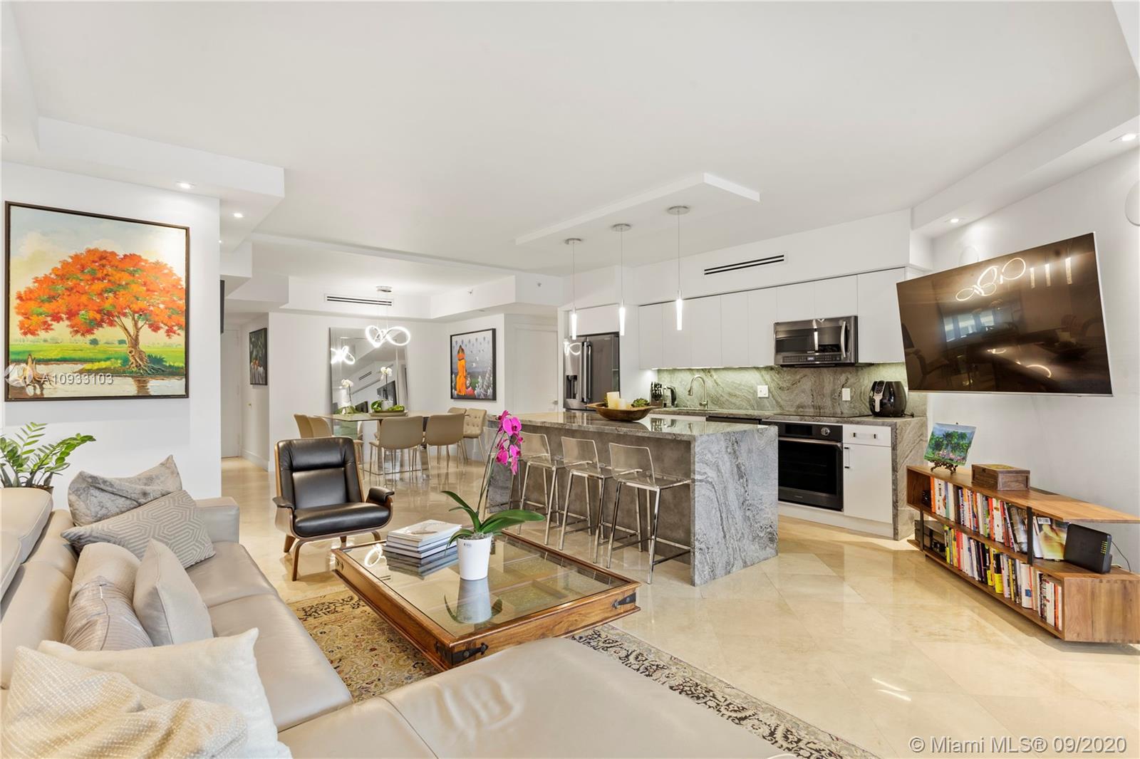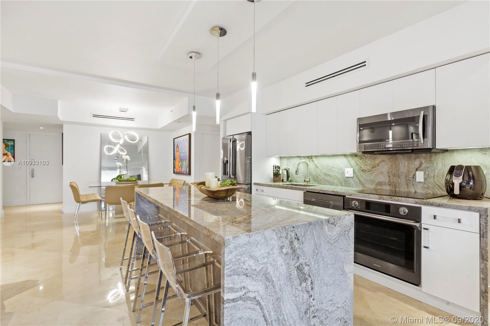 Completely renovated, no expense has been spared. This residence boasts an expansive floor plan. Large 2 bed/2ba plus a den. Fabulous master suite includes a spacious custom built walk-in closet and a large bath, outfitted with double sinks & glass large enclosed shower. Some other exquisite features include; floor-to-ceiling glass sliding doors; a large terrace with views of the ocean & bay; beautiful open kitchen with top of the line stainless steel appliances; electric blinds in all rooms; recessed lighting; surround sound, new AC & water heater. One assigned parking space. This unit is accompanied by five-star resort-style amenities, which include 24-hour security & valet, tennis court, large pool, gym, spa, poolside café & more.
