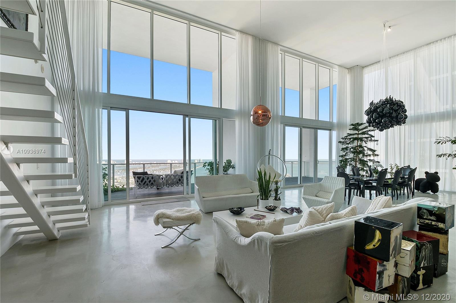 One of a kind 3-level Penthouse. Featuring 24- ft ceilings, private rooftop, plunge pool + 360° panoramic views of Miami skyline, Biscayne Bay, South Beach and Atlantic Ocean. This amazing unit of 5,247 sq.ft (as per owner, see floor plans) was designed by Oppenheim Architecture + Design with 5 bedroom/ 5.1 bathrooms, 2 master suites with private bathrooms, 2 TV rooms, 2 open kitchens, & 4 parking spaces . Enjoy resort style amenities with a 24 hour concierge, valet parking, fitness center and spa. Walking distance to Adrienne Arsht Center, museums & restaurants. Definitely one of the best penthouses in all Miami!