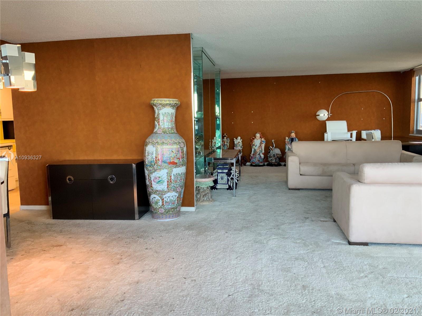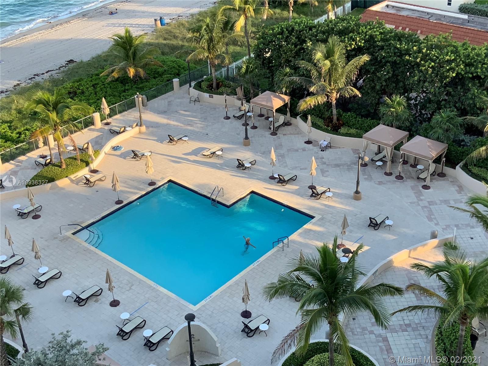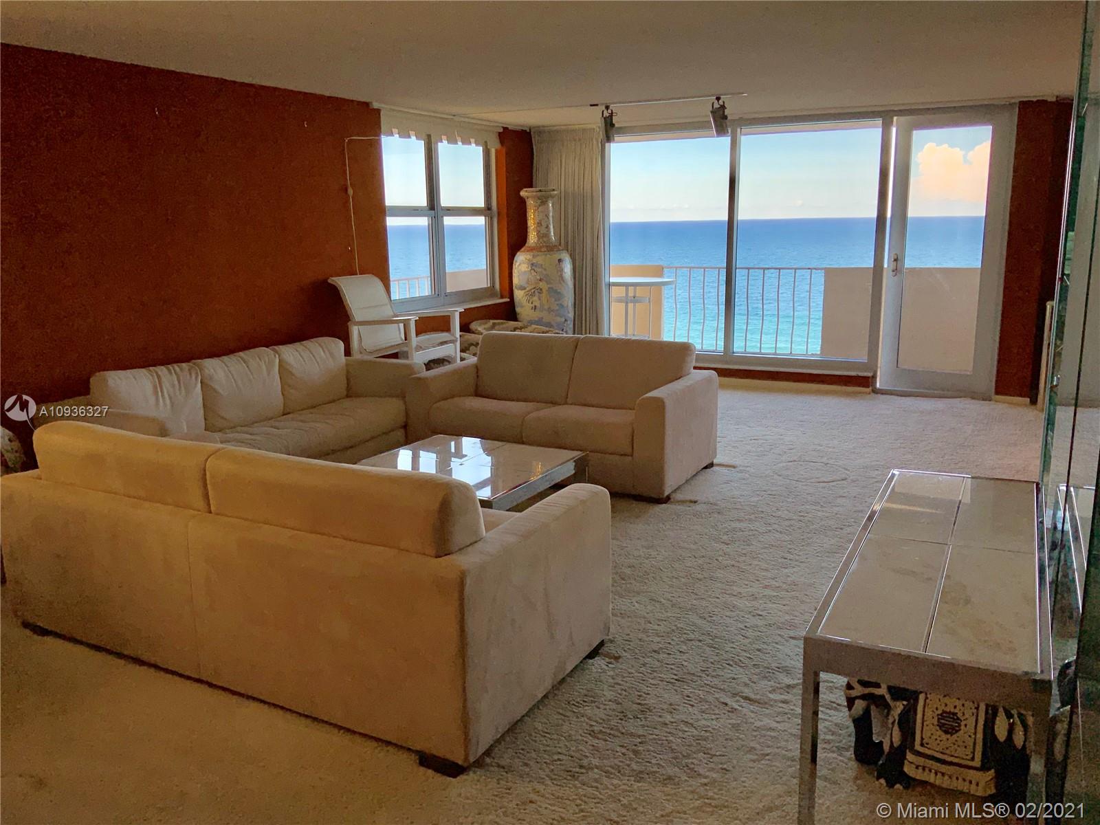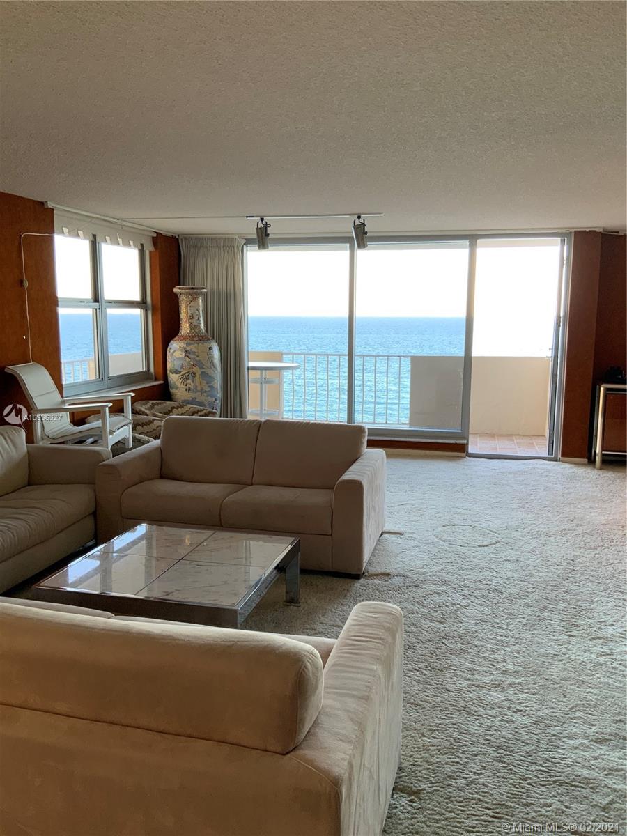 Amazing Direct Ocean views. Large 2 bed room and 2 full bathrooms apartment. North East Corner unit almost 2,000 sq ft. Ocean views from all rooms. Only 4 Apartments per floor. Each bed room has 2 walking closets. Laundry machines inside apartment. Huge corner wrap around balcony. New High Impact Hurricane windows. Amenities include: cable TV and HBO, Beach service, Large Heated swimming pool with Jacuzzi and Cabanas, BBQ Grills, GYM, Tennis court, Party room with kitchen, 24 hours Security, Reception and Complementary Valet Services. Walking distance to stores. Apartment needs complete Remodeling and has lots of potentials for Interior Design. With open kitchen remodeling would have Direct Ocean view. Covered parking. Apartment is vacant and easy to show ask Listing Agent for showing.
