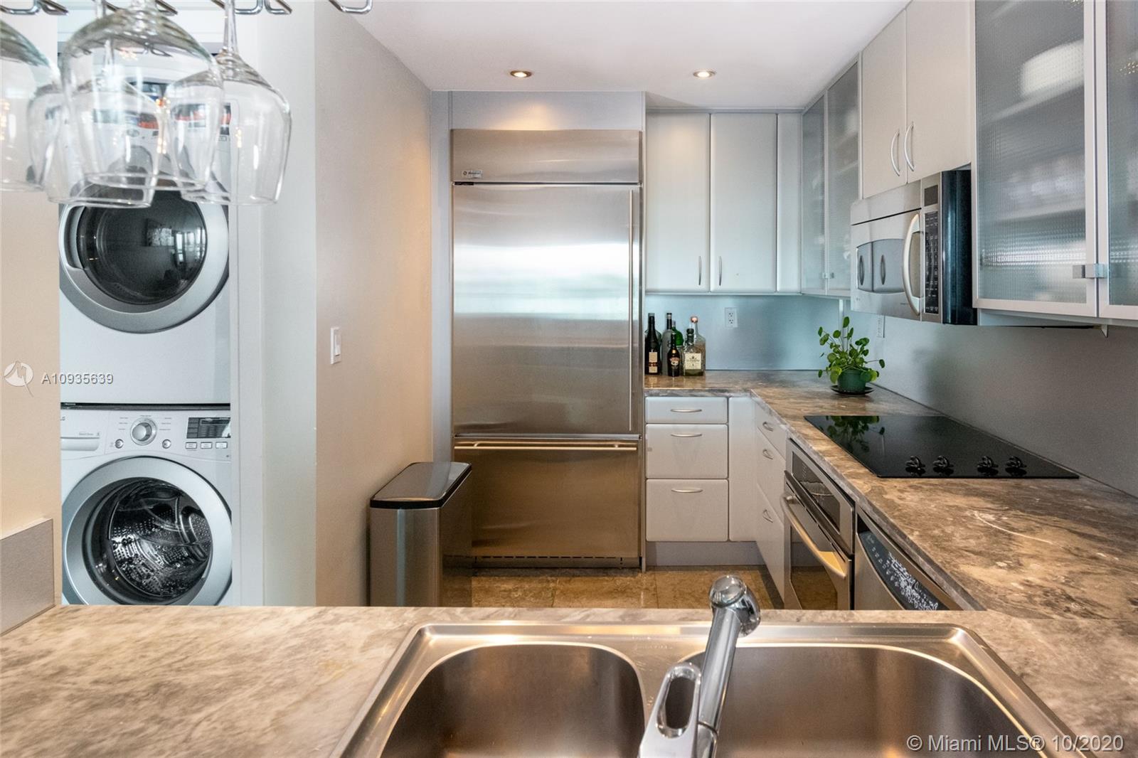 Super private building with only 4 units per floor. Amazing sunset views over the Miami skyline and biscayne bay. Master bathroom w/ full size tub, glass shower, granite counter tops, bidet & toilet. Master bdrm includes 2 large walk in California closets. Full wrap around balcony. Kitchen features granite counter tops, stainless steel appliances, dishwasher, refrigerator, microwave, range & bar. 2nd bedroom has one walk in closet, private sliding door to balcony & private 2nd bathroom next to bedroom entrance not visible from living room. Building amenities include steam room & sauna, private pool with attendant and food service, fully remodeled gym, valet parking, and on site concierge service.