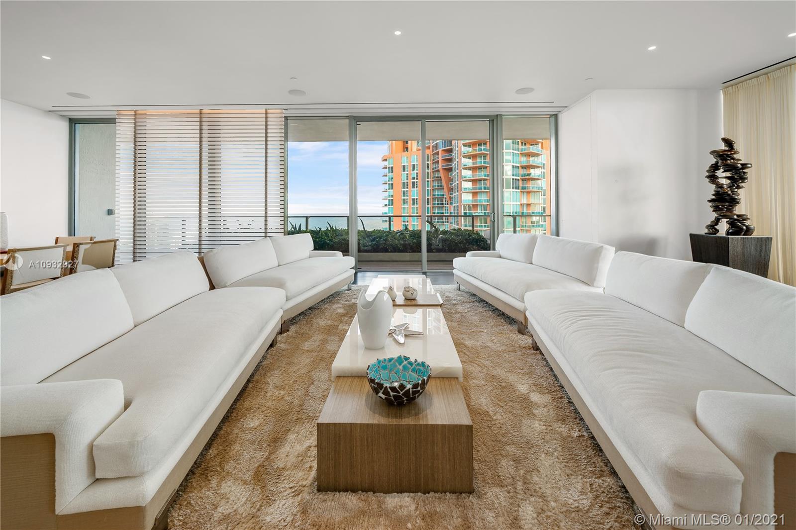 Step into your private foyer and enter this spectacular home in the sky. Boasting unparalleled style, design and views. No detail was spared in the complete renovation by world-renowned B5 Studio. Floor to ceiling windows & open floorplan complement sweeping ocean views. Bleached cerused oak walls accent the media room. Gallery walls w/ custom lighting to display art. Oak floors w/ mahogany stain throughout. Elegant primary bathroom w/ Mother of Pearl and Caesarstone floors & countertops. Feel the ocean breeze on wraparound terraces facing North, South & East, feat. Ipe floors & aerial gardens designed by landscape architect Reed Hilderbrand. Private two-car, air-conditioned garage. Apogee offers the ultimate level of prestige, privacy, security & concierge services in the heart of SOFI.