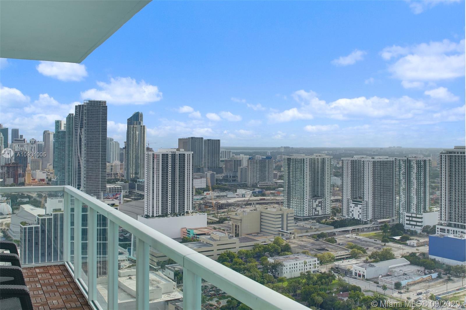 Soar above Miami in this 43rd floor, spacious corner unit w/ a large wraparound terrace & stunning views of direct sunsets, the Miami skyline & South Beach! Located at the end of the hall for added privacy, this beautiful unit has a flawless layout: hallway entrance, split-bedroom floorplan, large walk-in closets in both bedrooms, & a separate area for a large dining table. High-end porcelain floors, European-style kitchen w/ Quartz countertops, & recently renovated bathrooms! Quantum on the Bay is a luxury waterfront building in booming Edgewater in front of Margaret Pace Park w/ 5-Star Amenities: 2 pools, 2 story gym w/ classes, theatre, biz center, 2 lounges/party room, sauna/steam, 24H security, convenience store & more! Minutes from Wynwood, Brickell, South Beach, Midtown & More!