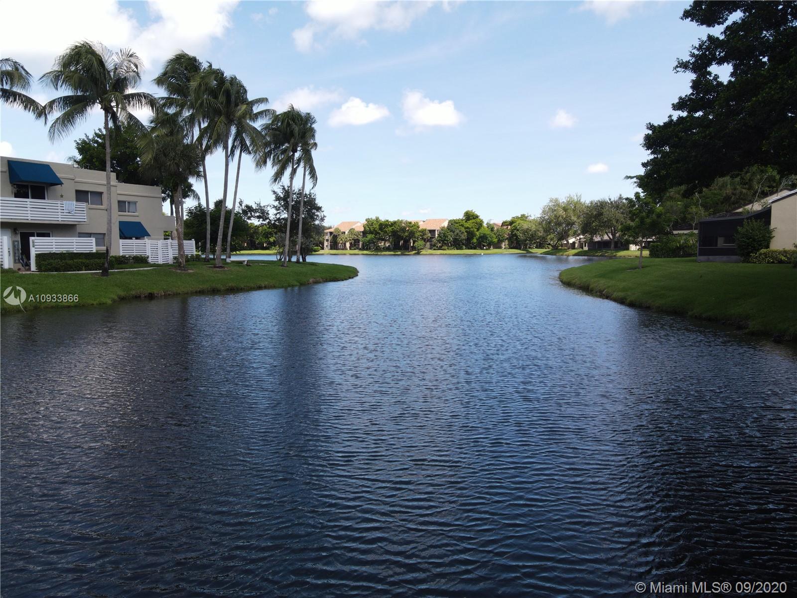 This is a must see beautiful 1-story corner townhome in sought after Jacaranda neighborhood of Plantation. The lake views are amazing and you will enjoy the tranquility from the large screened in patio with no obstruction picture window screens. Great open floor plan with vaulted ceilings. Upgraded kitchen with quartz countertops, wood self closing cabinets and drawers, built in lazy suzan and spice rack, stainless steel appliances with double oven, large sink with more amazing lake views. Large bedrooms with lots of storage and closet space. Bedroom closets have built ins with adjustable shelving. Both bathrooms upgraded with nice tile work and master bathroom has large shower with double showerheads. Accordion shutters throughout and electric patio shutter. Great home for entertaining!
