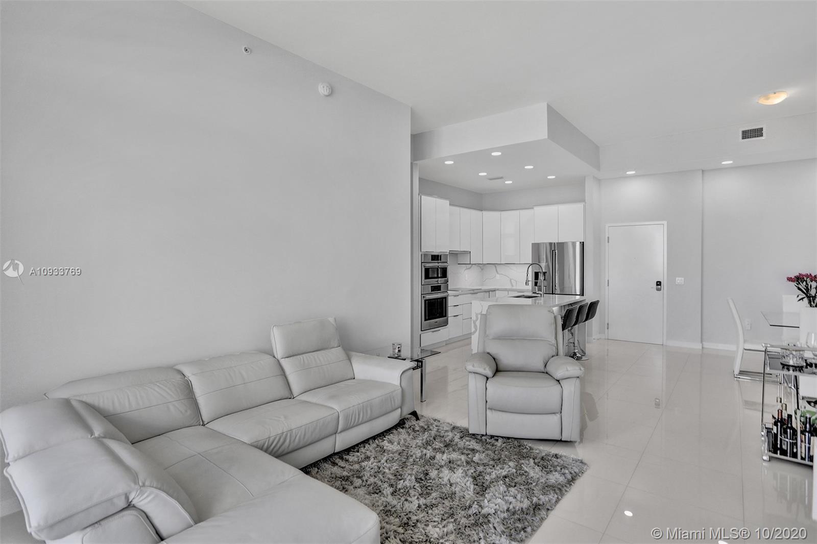 Fully Renovated PENTHOUSE For Sale in Midtown Doral. This 2 Bedrooms/2 Baths unit features High ceilings with porcelain tile floors. Modern designer kitchen with quartz countertops, new Bosch and Samsung stainless steel appliances, and European finishes. Bathrooms remodeled with quartz countertops and fresh tiles. NEW washer and dryer. Soundproof panels. No Expense Spared! Large balcony with private views of the Miami skyline. Two assigned parking spaces. Low HOA! TURN KEY ready.