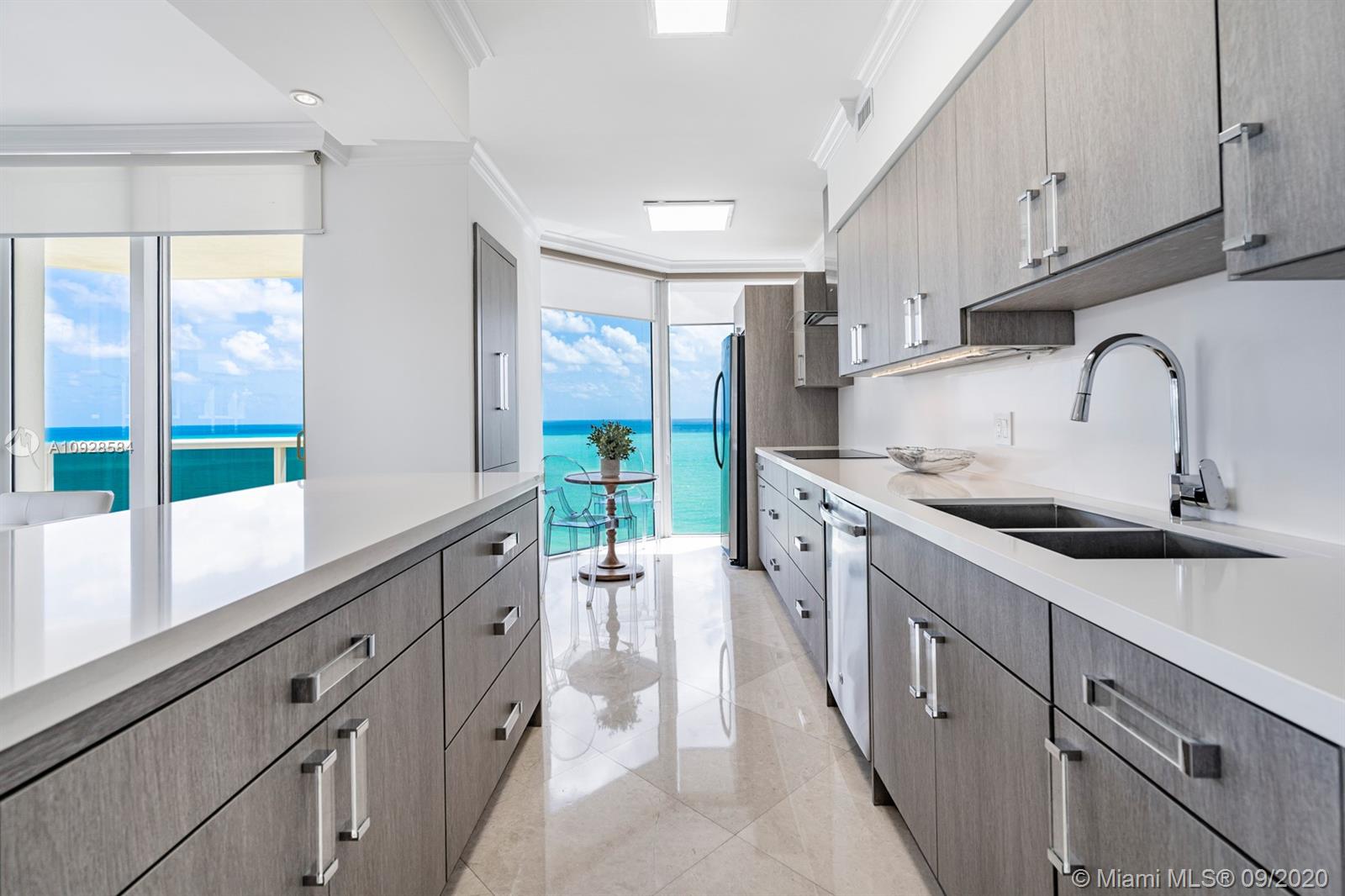 Spectacular is the only word that describes this substantially upgraded and impeccable oceanfront corner unit at Blue diamond. Absolutely stunning renovated and furnished. Almost 2000 sqft 3 beds 3 full bath w/ ocean views from every room. Double door entry to the foyer and in to a open concept living with a barn polish glass door giving you privacy and elegance. Custom made closet for wine cooler sized for over 150 bottles. Marble floors throughout, just polished. Open kitchen w/ SS appliances and white quartz counter tops & newer grey cabinets. Elegant and sizeable master suite, with balcony access, spacious walk-in closet & spacious white marble master bath. Enjoy the state of the art resort style amenities of blue Diamond. 2 parking spaces, 2 storages, furnished, equipped and vacant.