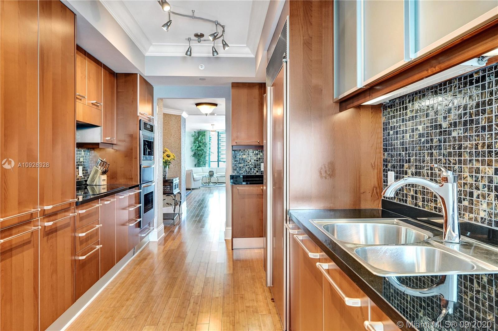 Incredible opportunity to own a luxurious villa in the sky on high 19th floor. Step off a private elevator through double doors into this large flow-thru condo with oversized North and South balconies. Panoramic ocean and Intracoastal views from every room through floor-to-ceiling glass. Beautifully finished with bamboo floors, granite counters, Italian cabinetry, high-end appliances, Jacuzzi tub, frameless glass shower and built-in closets. Two parking spaces by elevator. Unique modification to floor plan creates open den. Ocean Palms is a majestic and modern tower located on 240 feet of beautiful Hollywood Beach. The five-star amenities include a two-story fitness center, spa with sauna and massage rooms, media room, party room, billiard room, ocean-side pool, hot tub, and tennis courts.