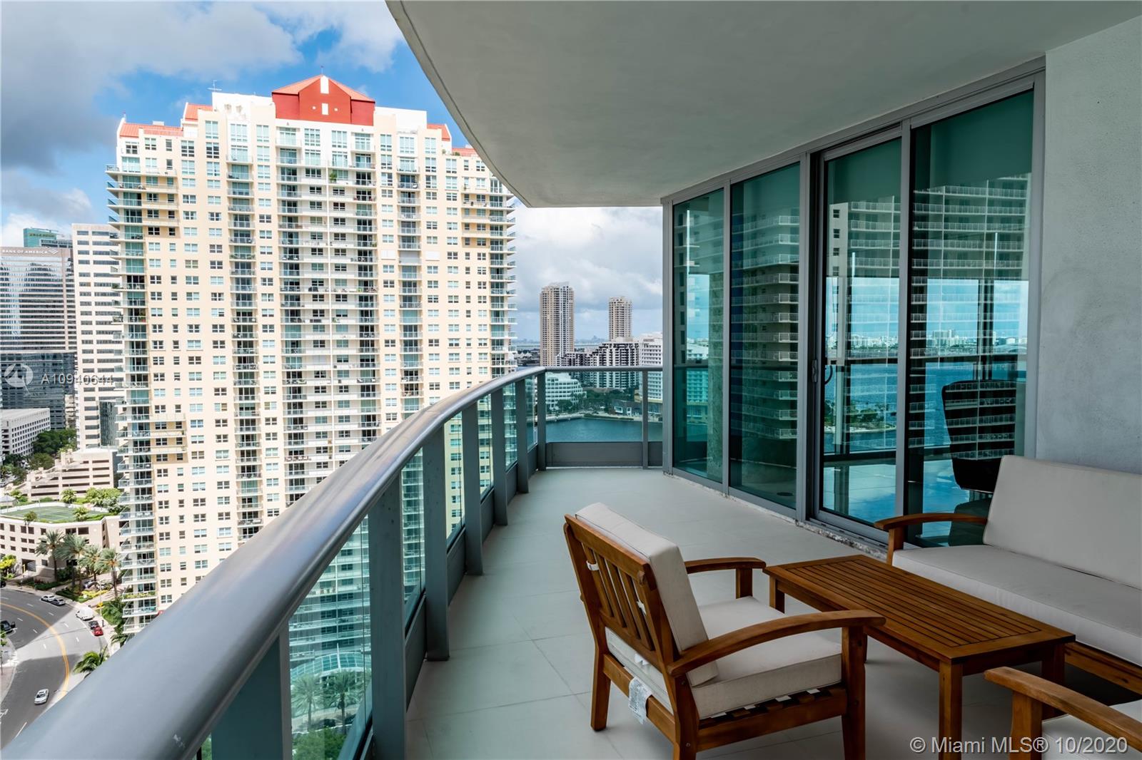 Beautiful corner unit in The Jade at Brickell Bay featuring stunning ocean, bay and city views. 2 bedrooms and 2 full bathrooms in an open split floor plan. European kitchen with stainless steel appliances and granite counter-tops. Spacious master suite with walk-in California closet, master bath with dual sink, jacuzzi tub, frameless glass shower and separate toilet and bidet. Marble flooring throughout. Exclusive owners elevator opening on unit foyer. 2 open balconies, 2 garage parking spaces and 1 separate storage closet. High-end building with all contemporary amenities offering a tranquil, luxury lifestyle at the edge of vibrant Brickell. Only steps away from shopping, restaurants, bars and entertainment.