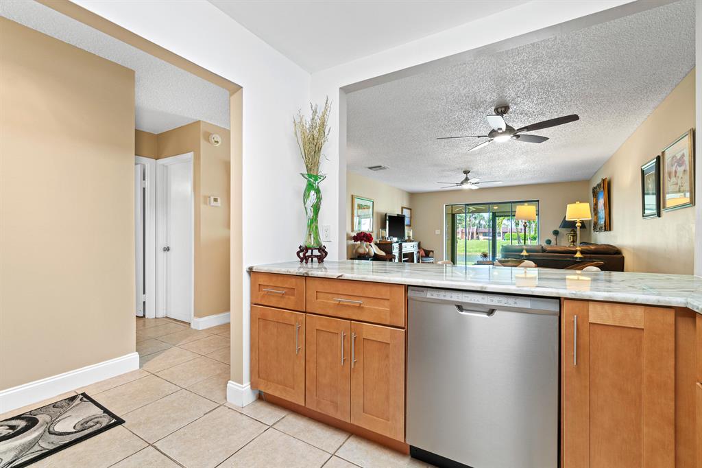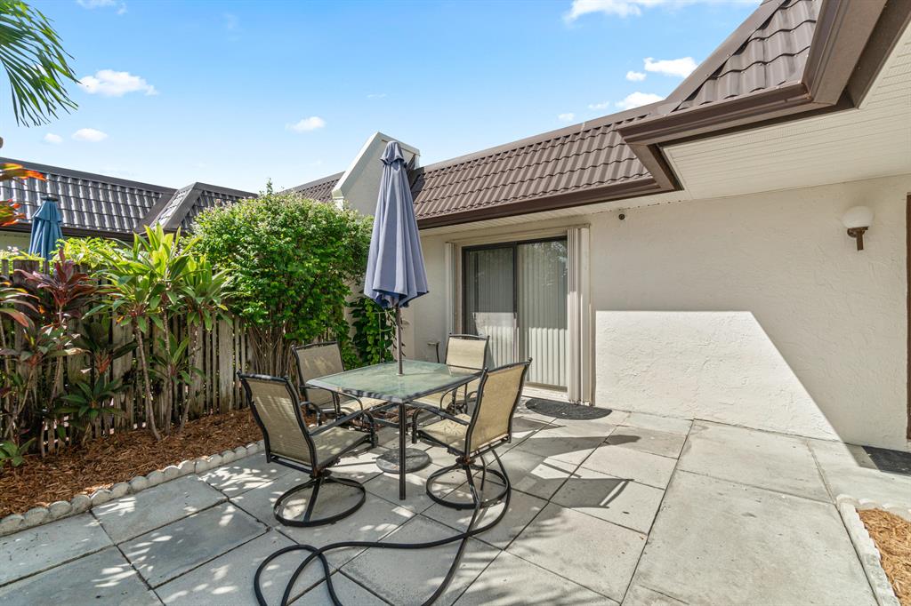 Lovely end unit villa with 1 car garage. Totally remodeled in October 2016. Beautiful custom cabinets, granite countertops and stainless steel appliances. See Documents for complete list of upgrades. Larger layout of the two layouts on Lake Paula. Fenced Courtyard.