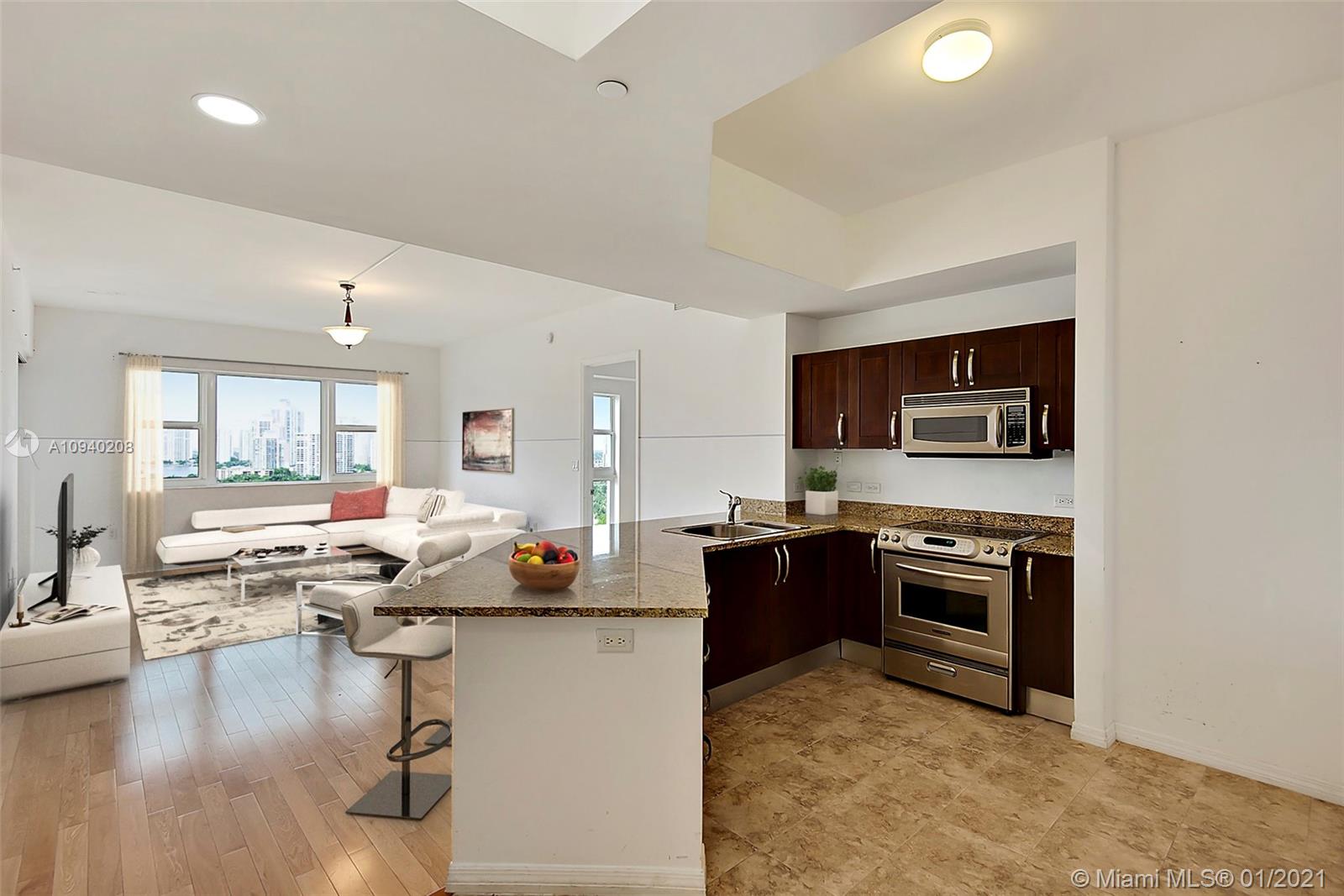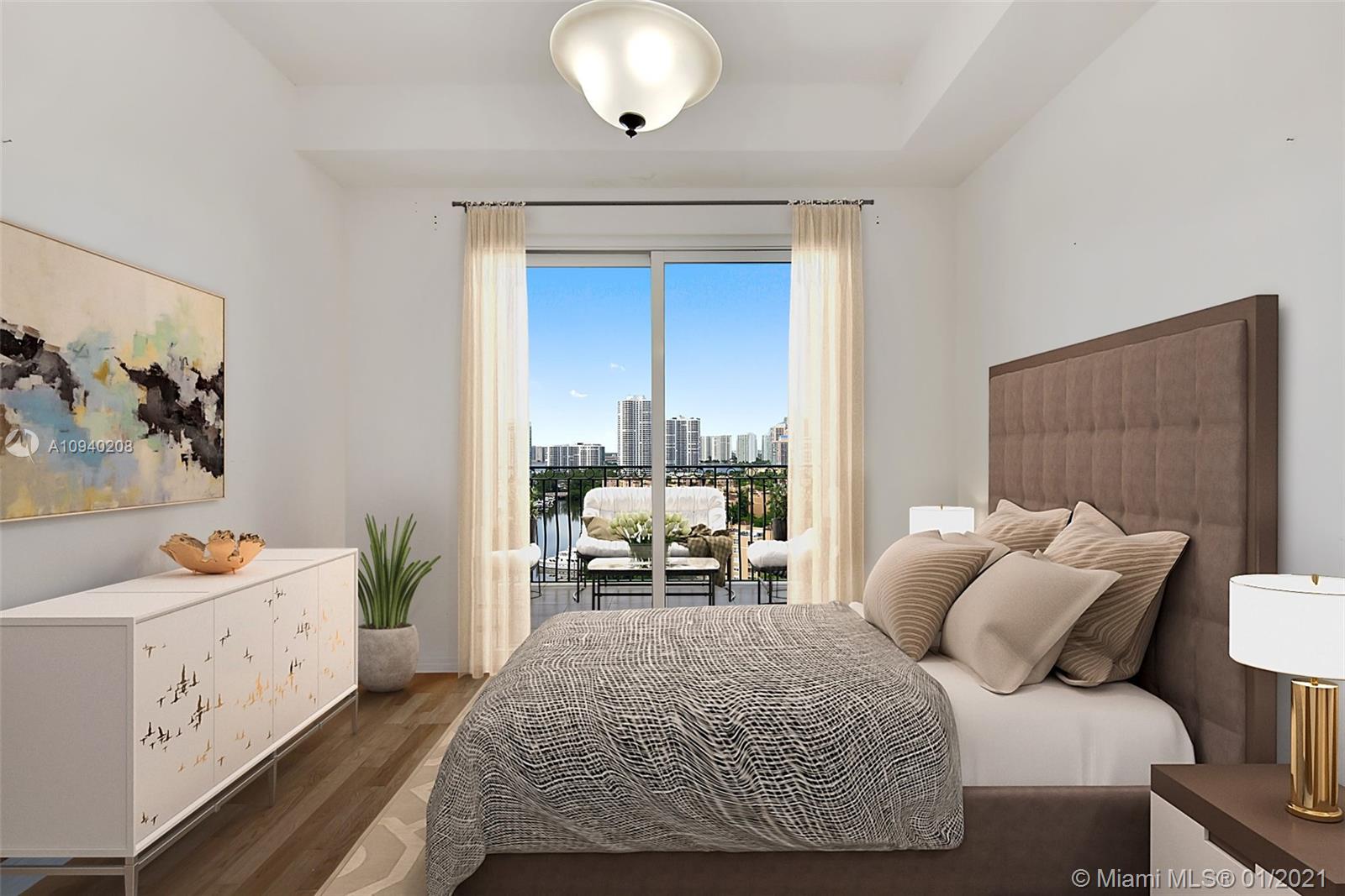 Best deal in the highly coveted Turnberry Village!! Absolutely stunning TOP FLOOR 2-bed, 2-bath unit. Enjoy incredible city and water views from your private balcony perched high on the 14th floor. Plenty of natural light throughout with an open concept living room and kitchen. Fantastic high amenity/full-service building for true resort style living. Unbeatable location close to shopping, dining, entertainment, and the beach. This is a must see. Schedule a showing today! Virtually staged.