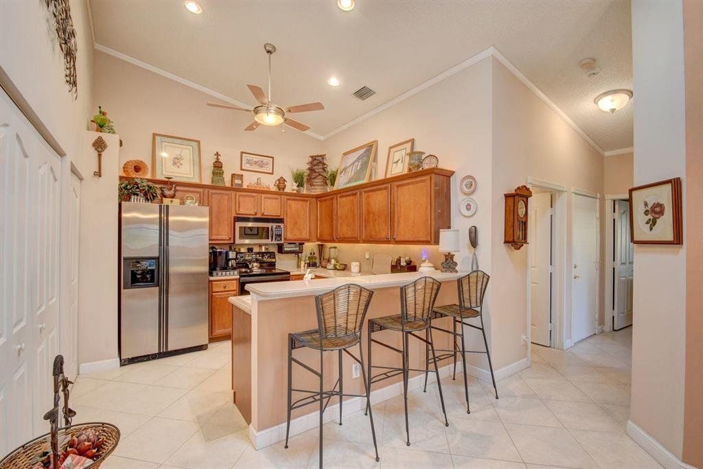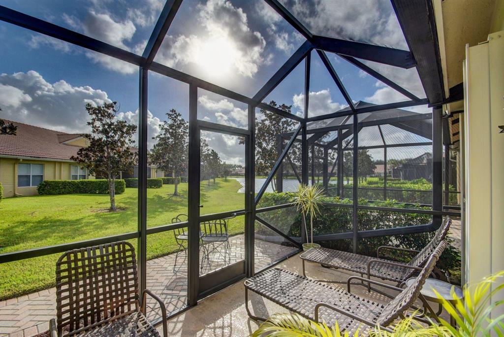 Accepting Back-up Offers! Impeccable Waterfront Corner Villa in Baywinds. Located on an oversized pie shaped lot, walking distance to the clubhouse. Fully extended patio spans the entire width of the villa, is screened & covered featuring cabinets & water view. A brick walkway surrounds the property from driveway to patio. Inside you'll notice the 18'' diagonal ceramic tile throughout, extensive floor to ceiling millwork, updated lighting fixtures & lovely French doors that open to the patio. The kitchen features Corian countertops with full back-splash, cherry wood cabinets with crown molding & custom lighting. Master bedroom has a vaulted ceiling and access to the patio. Storm ready with accordion hurricane shutters and plenty of storage. Furniture is negotiable.