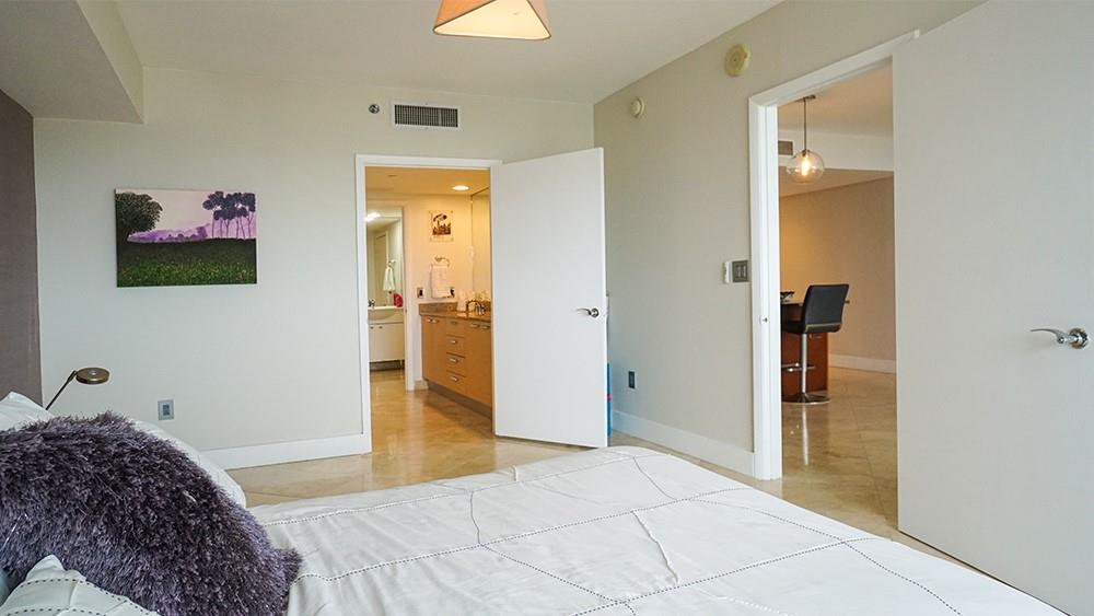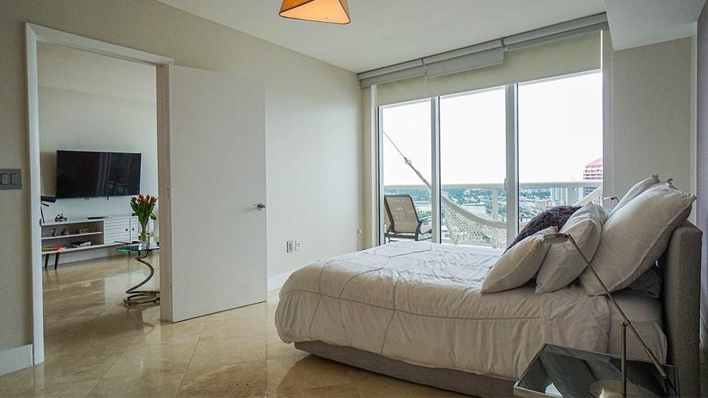 RESORT LIFESTYLE ON THE SAND-INCREDIBLE VIEW! Stunning 2 bed, 1 bath with floor to ceiling windows, open kitchen concept, marble floors throughout, remote control window & blackout shades in master bedroom, walk-in master closet & luxurious jacuzzi tub. FIVE STAR AMENITIES, incredible resort style pool deck, heated infinity pools and spa overlooking the ocean, state of the art fitness centers, access to adult only tower with poolside cafe, recreation center, H2O Lounge with daily coffee bar, 24-hour front desk staff, valet and full service day spa. Secured entry. Park in your own space or valet for free. You never need to leave home again, but if you fancy to, shopping, restaurants and spectacular night-life just midway between Ft Lauderdale & Miami! Ready for you to move in right away.