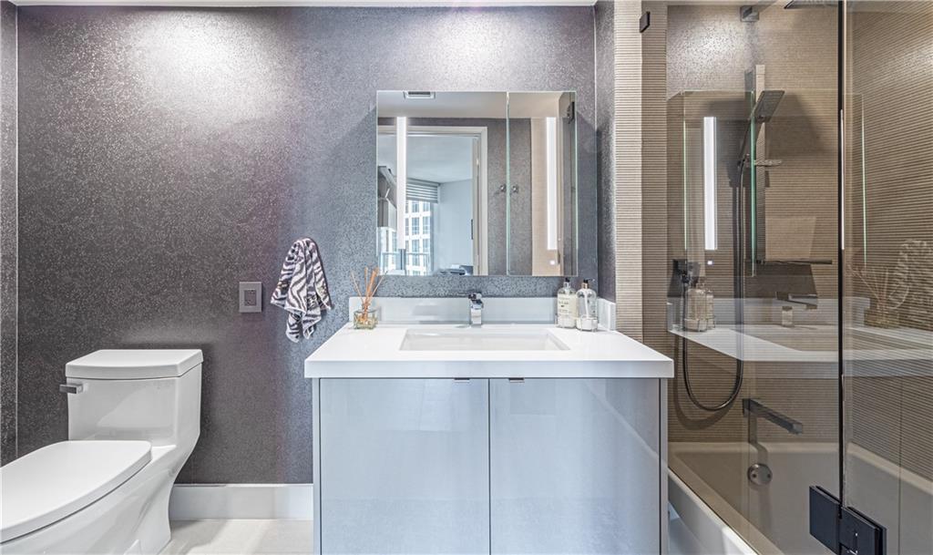 Exquisitely decorated Gramercy model with elegant finishes thru/out. Bathrooms have been totally renovated w/over $75k of customized upgrades. Gourmet kitchen upgraded w/exotic Pompeii Quartz backsplash & countertops plus new induction cooktop. Marble floors in main living area,beautiful light fixtures,motorized shades and so much more.....perfect for entertaining w/two spacious terraces & amazing river & city views. Luxury landmark building w/5 star resort style amenities. Live just steps from Las Olas Blvd w/ all the restaurants,shops & entertainment.