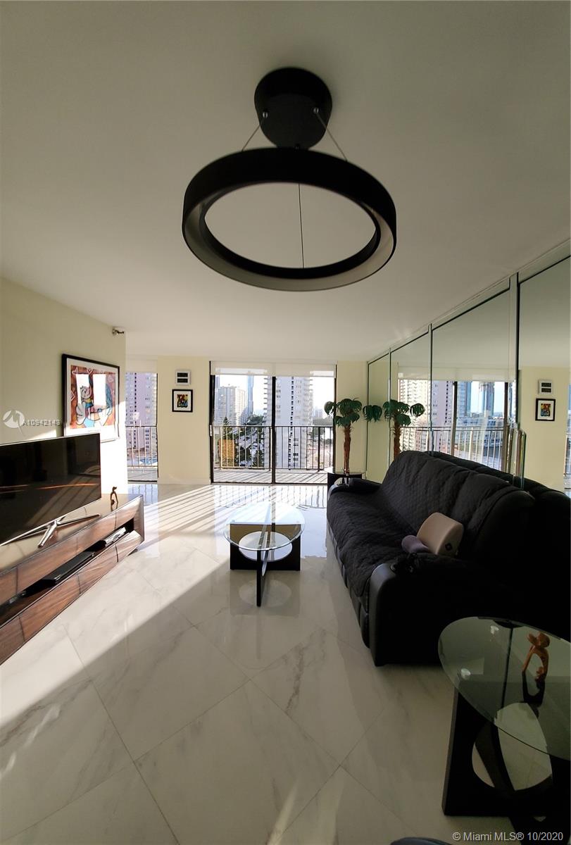 RECENTLY COMPLETELY REPLANED AND RENOVATED BIG 1 BR 1,5 BATH APARTMENT IN THE HEART OF SUNNY ISLES. FULL AMENITIES BUILDING WITH HEATED POOL, TENNIS COURT, GYM, SAUNA, PING PONG TABLE, LIBRARY, ETC. MAINTENANCE $357.00 INCLUDES CABLE TV, WI-FI INTERNET AND TOTAL INSURANCE FOR ALL APLIANCES. ASSIGNED PARKING IN THE GARAGE. 2 HUGE AIR CONDITIONED WALK IN CLOSETS. NEW WASHER/DRYER, NEW STAINLESS STEEL APLIANCES, NEW AIRCODITIONER. BREATHTAKING VIEW OF THE BAY, OCEAN AND SUNNY ISLES SKYLINE. FURNITURE ALSO IS FOR SALE.