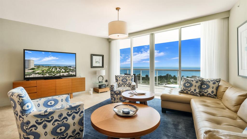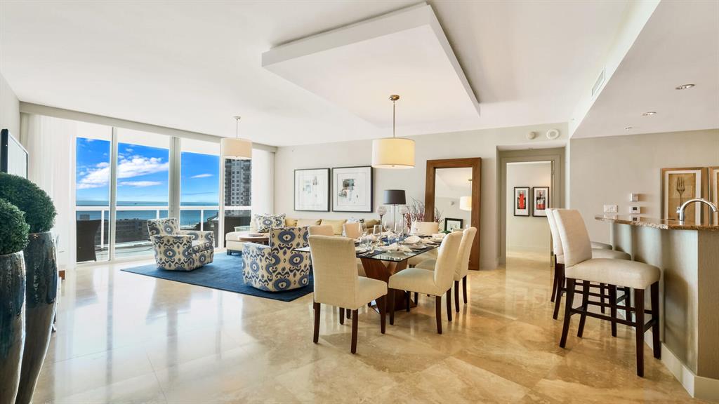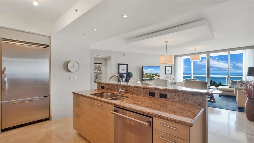 Gorgeous sky residence at the fabulous Plaza at Oceanside with private elevator point-of-entry stunning ocean views! Enter into a beautiful open floor plan with your living/dining grand salon perfectly capturing the spectacular ocean view. The residence features marble flooring though-out, motorized window treatments, floor-to-ceiling windows, a large upgraded ocean view designer kitchen with Poggenpohl European designed cabinetry, new Viking stainless steel appliances and granite countertops, an adjoining laundry center and an adjacent conveniently located work-from- home desk area. The expansive master suite opens to the terrace and has two closets and a luxurious bathroom with Roman tub and two sinks/vanities. The guest suite has a walk-in closet and ensuite bath.This high-end 2